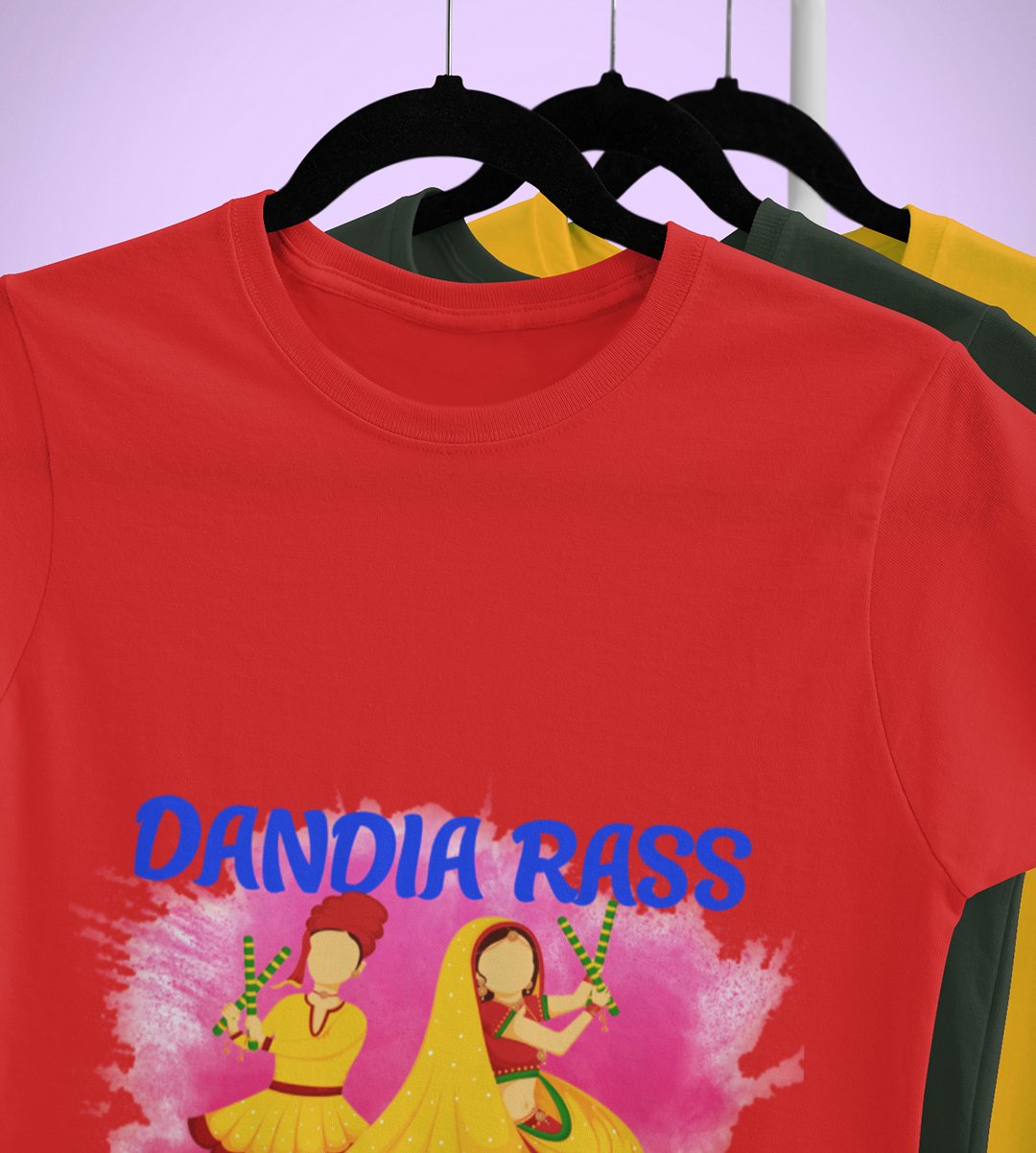 Dandiya rass printed unisex adults round neck cotton half-sleeve red tshirt specially for Navratri festival/ Durga puja