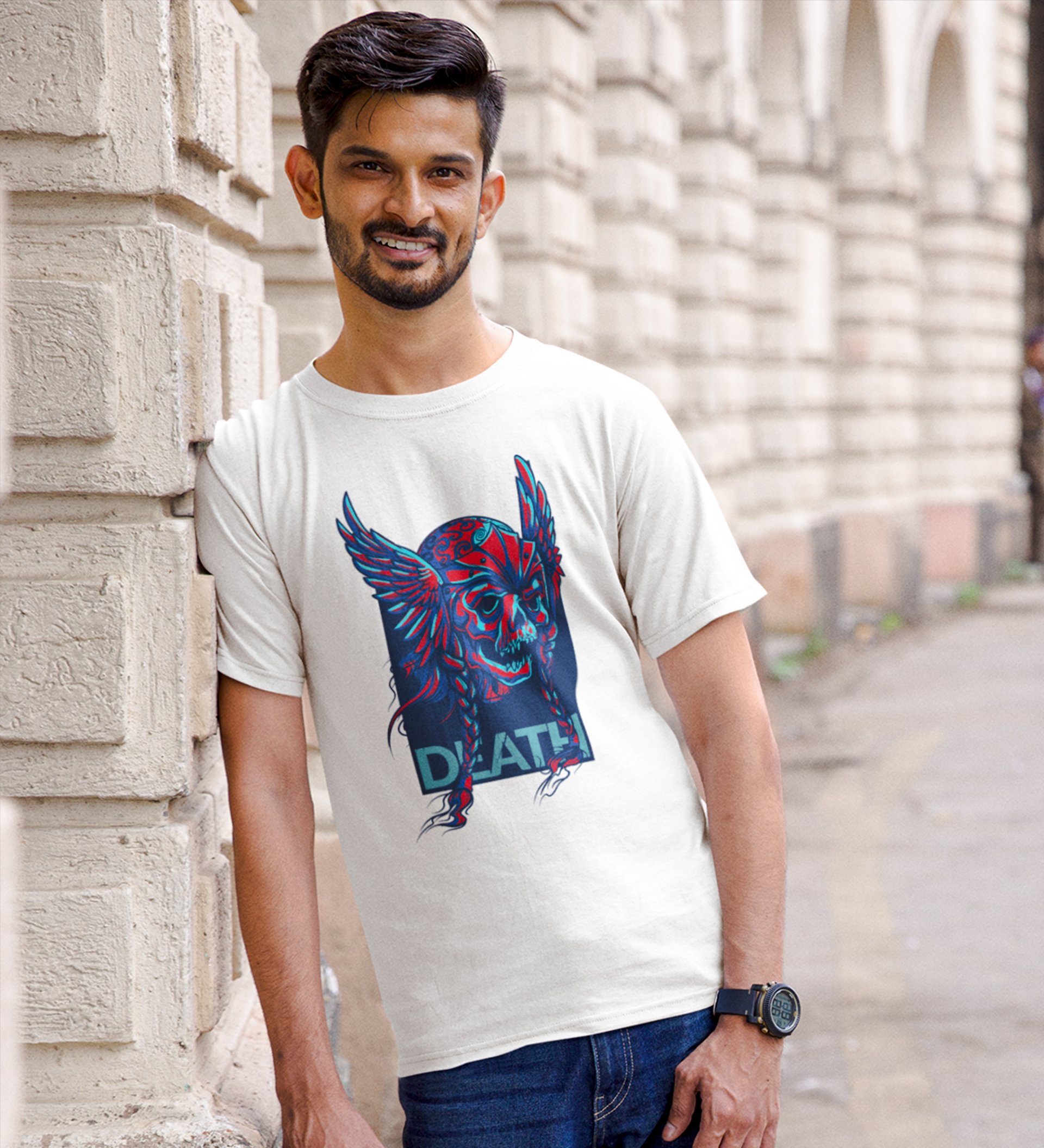 Angel Of Death White Round Neck Cotton Half Sleeved Men's T-Shirt with Printed Graphics