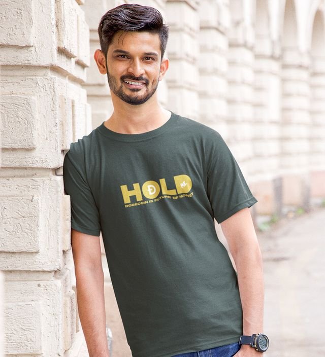 Declaration Of Dogecoin Wings Green Round Neck Cotton Half Sleeved Men's T Shirt with Printed Graphics