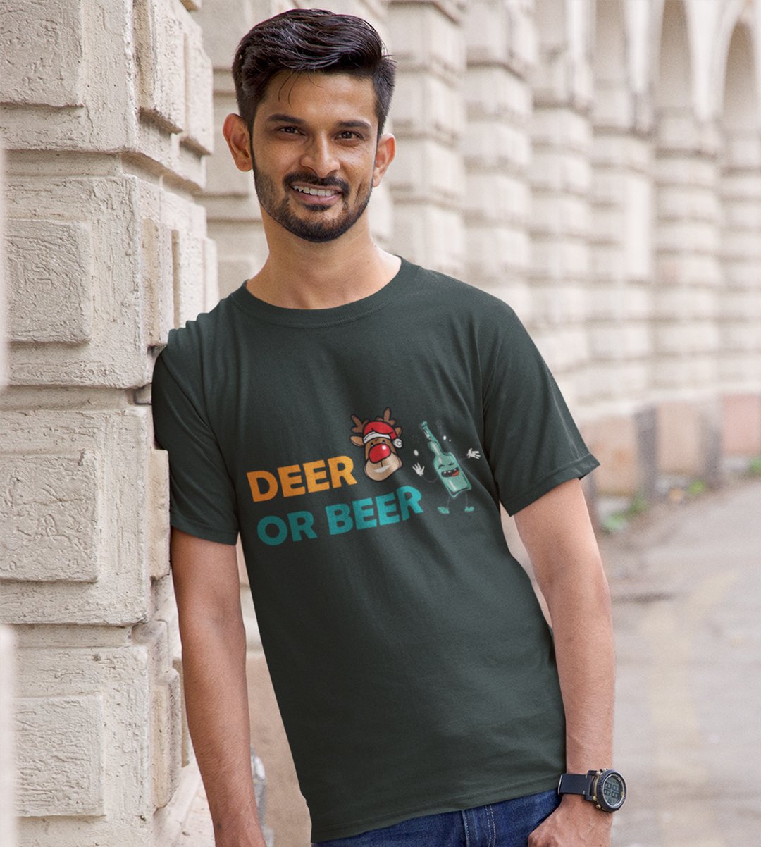 Deer Or Beer: Beautifully Crafted T-shirts(Green) Best Gift for Boys Girls