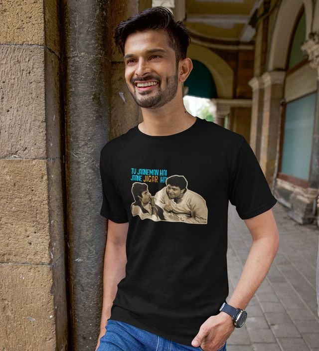 Defination Of Friend Black Round Neck Cotton Half Sleeved Men T-Shirt with Printed Graphics