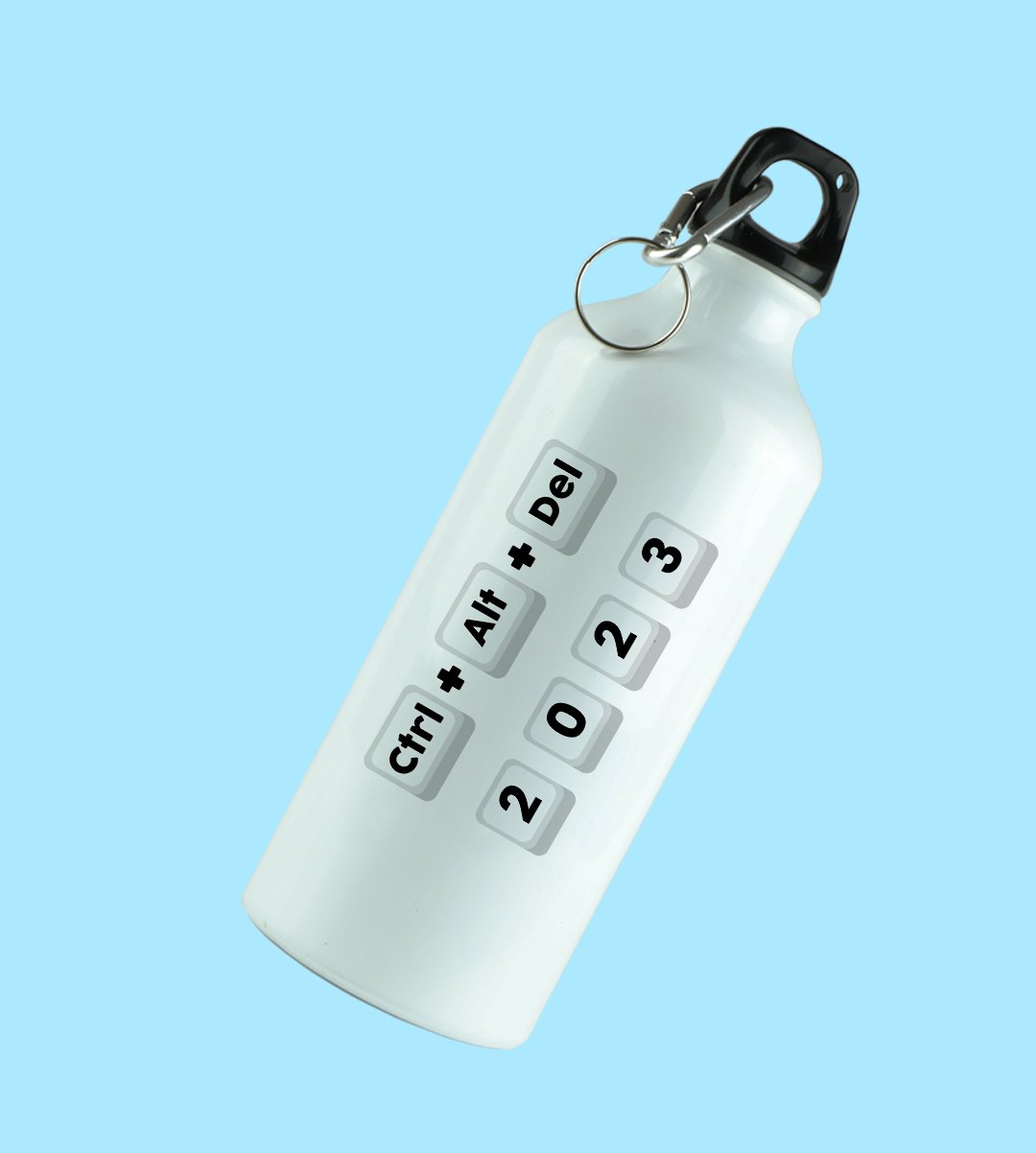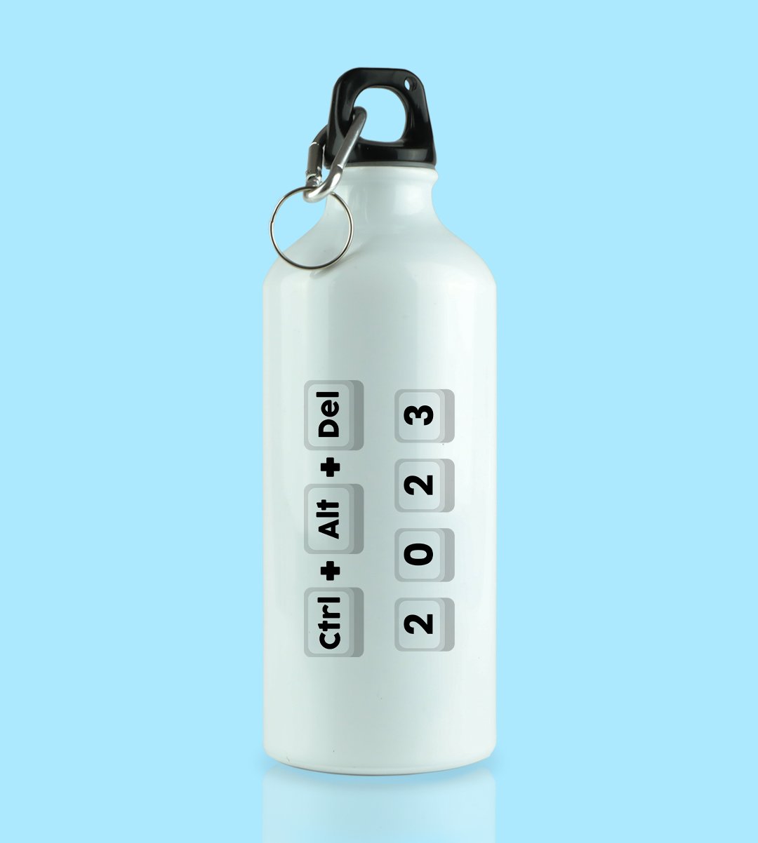 Delete 2023, New Year Printed Aluminium Water Bottle