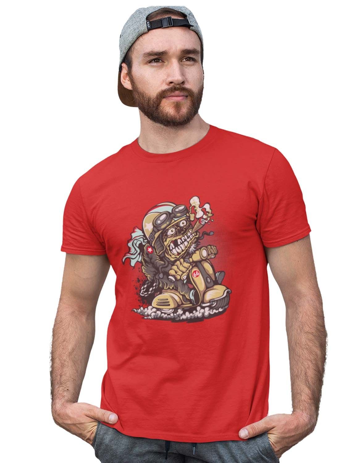 Demon- The Rider Red Round Neck Cotton Half Sleeved T-Shirt with Printed Graphics