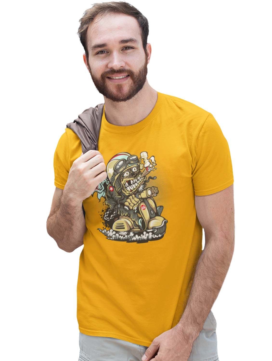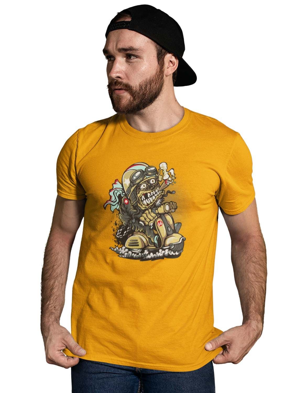 Demon- The Rider Yellow Round Neck Cotton Half Sleeved T-Shirt with Printed Graphics