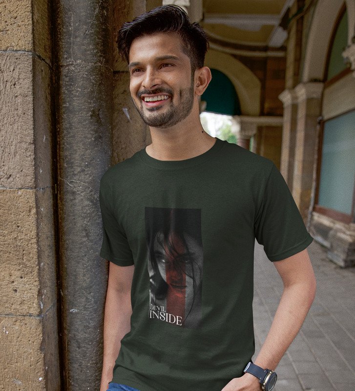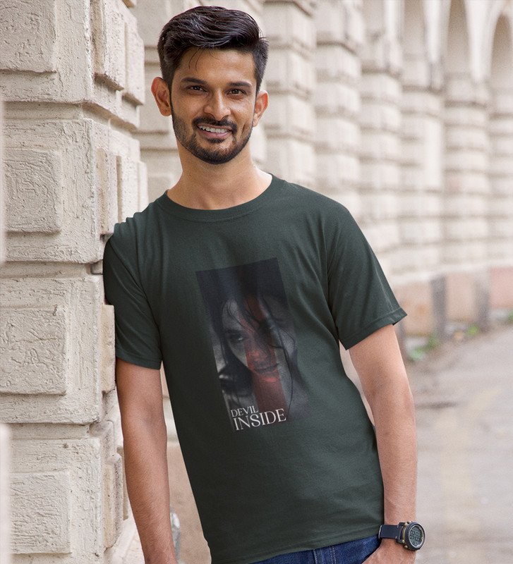 Devilish, City Pulse: Explore Green Trendy Front Print Tee - Men's Street Style