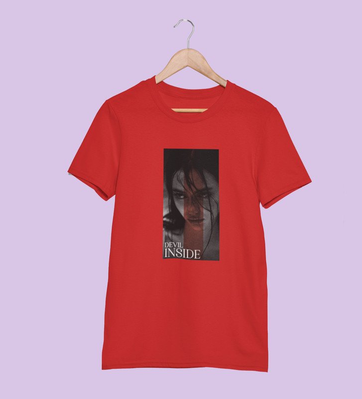 Devilish, City Pulse: Explore Red Trendy Front Print Tee - Men's Street Style