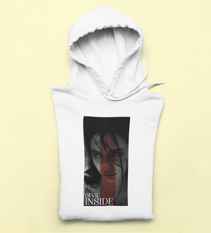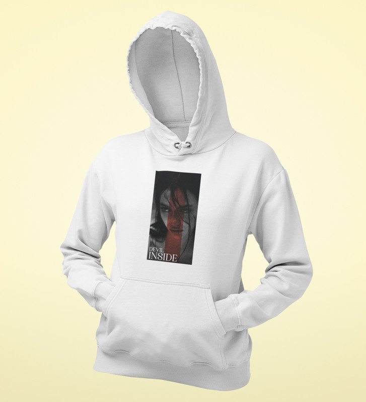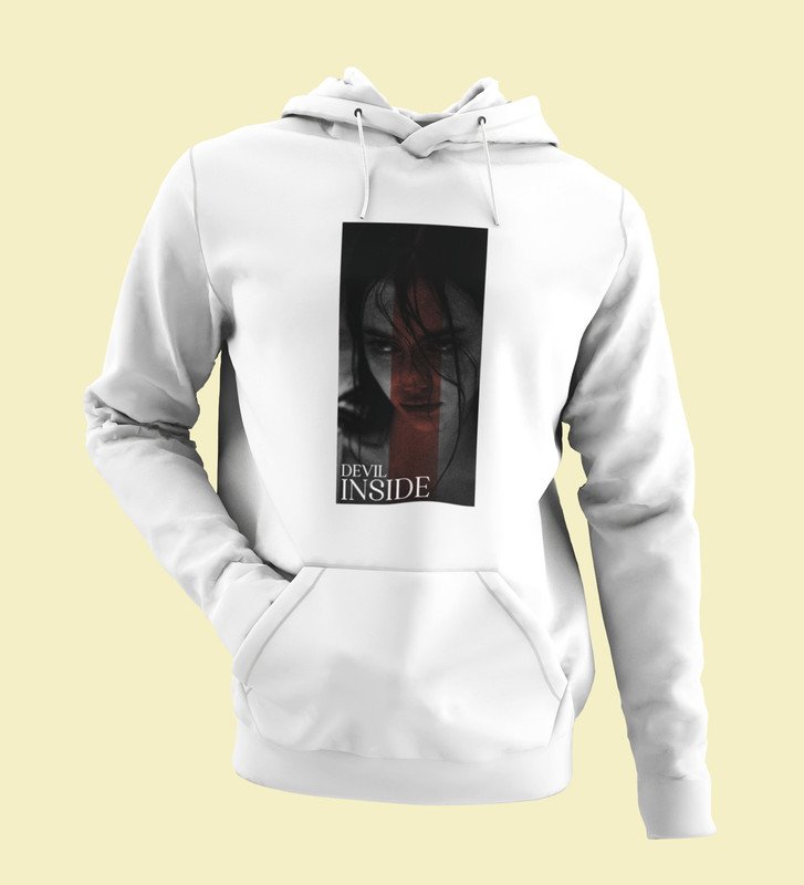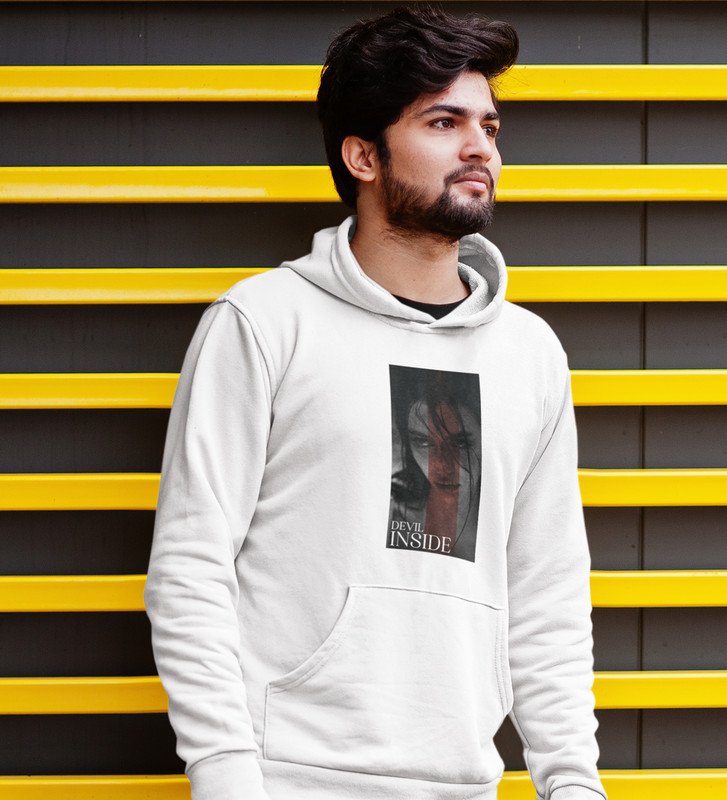 Devilish, City Pulse: ExploreWhite Trendy Front Print Hoodie - Men's Street Style