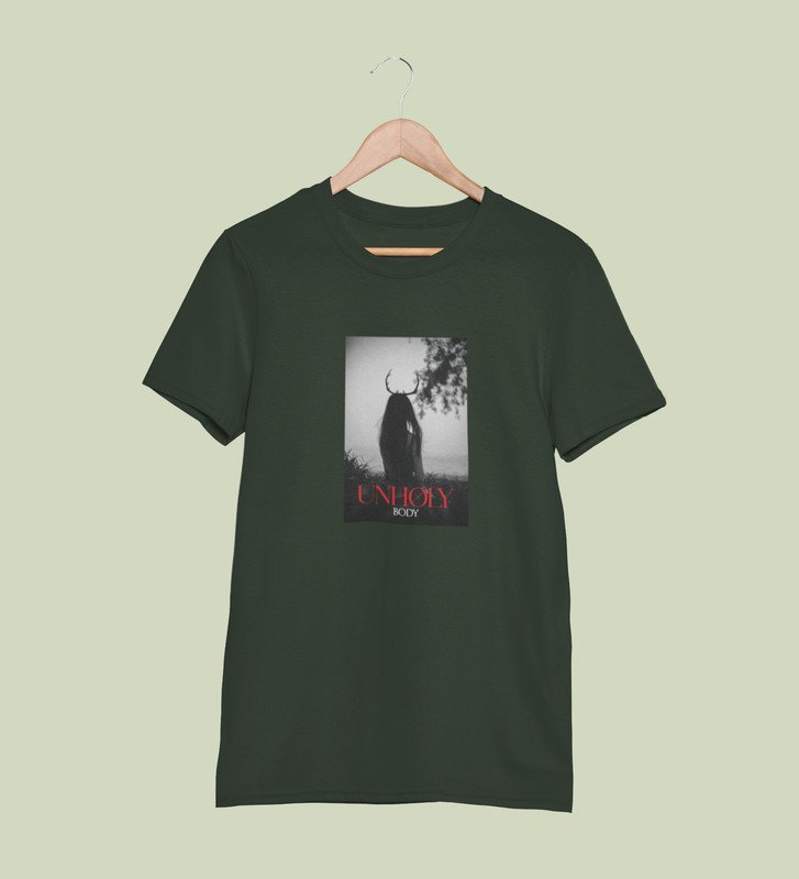Devil's Body, Street Fusion: Green Trendy Front Print Round Neck T-Shirt - Men's Edition