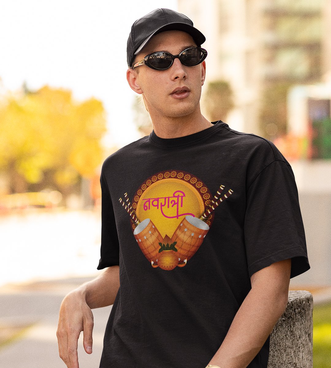 Navratri is a very auspicious festival for hindus. It takes place at the beginning of October and sometimes September. Enjoy the 9 days of festivities with full zeal and make yourself submerged in the love of Maa Durga. Navratri is also known as Durga Puja. And with this Tees, you can shine like a star during this festive season with our navratri themed cotton half sleeved Tshirts. You can pair our t-shirts with trousers and denim of your choice and make it a weekday smart casual or weekend wear. This is durable. This tshirt is smooth and soft which makes you comfortable to wear during all seasons. The printing in it is durable and odourless. It has five sizes, S,M,L,XL,XXL. The Tshirt colour is intact even after repeated washes. It can be kept in your wardrobe and hangers. Please avoid washing mashine to clean this Tee, it may affect the print. Hand wash only. We have brought you many navratri related designs printed on our different colour Tshirts to choose from. Grab it now.