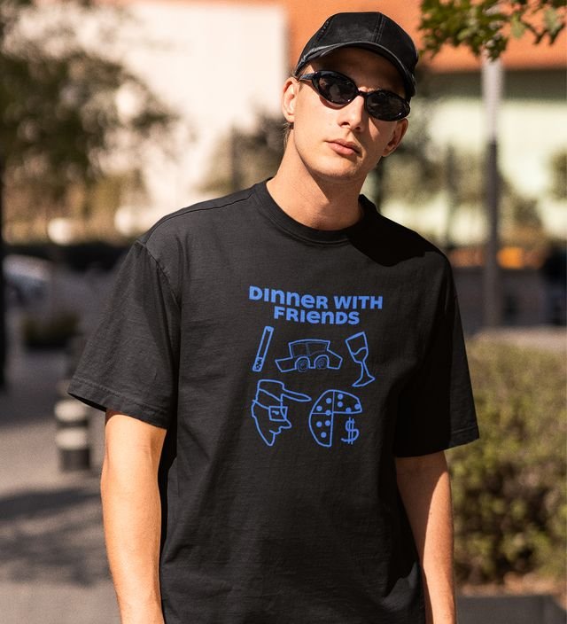 Dinner With Friends Black Round Neck Cotton Half Sleeved Men T-Shirt with Printed Graphics