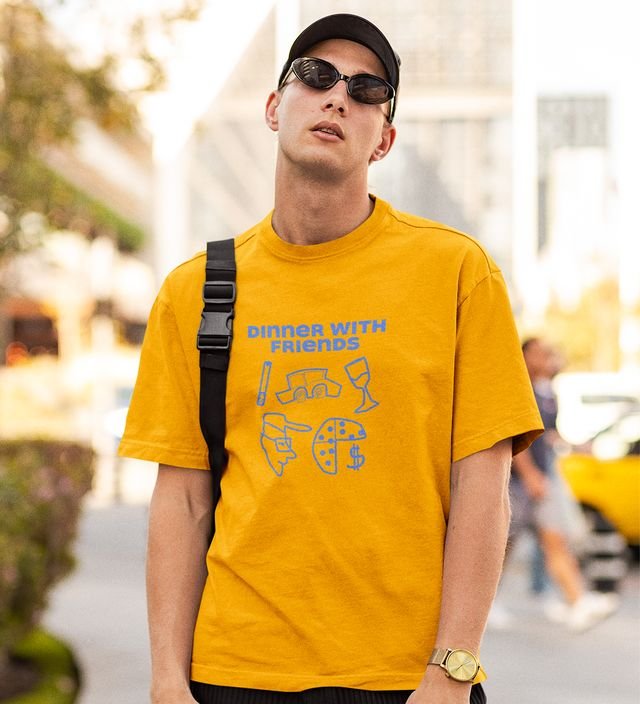 Dinner With Friends Yellow Round Neck Cotton Half Sleeved Men T-Shirt with Printed Graphics