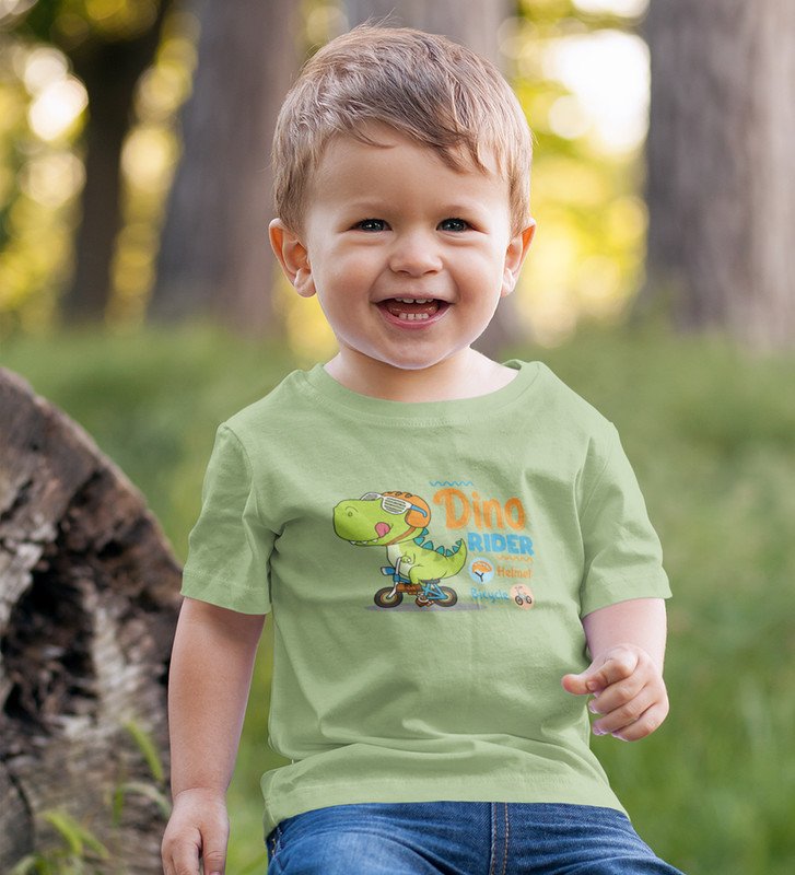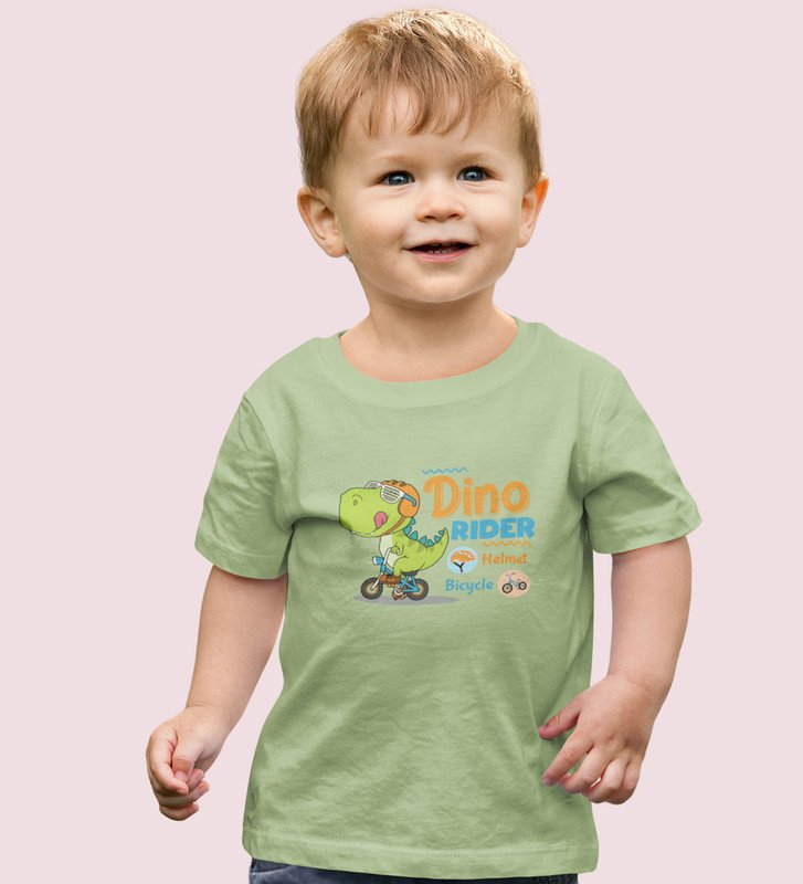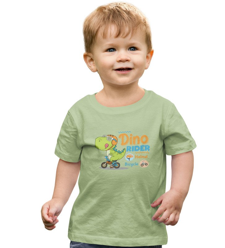Dino Rider, Boys Round Neck Printed Blended Cotton T-shirt (olive green)
