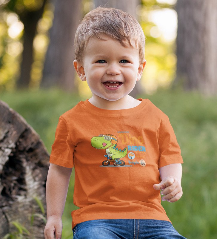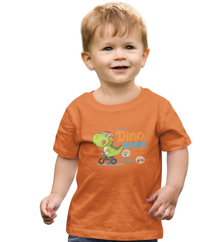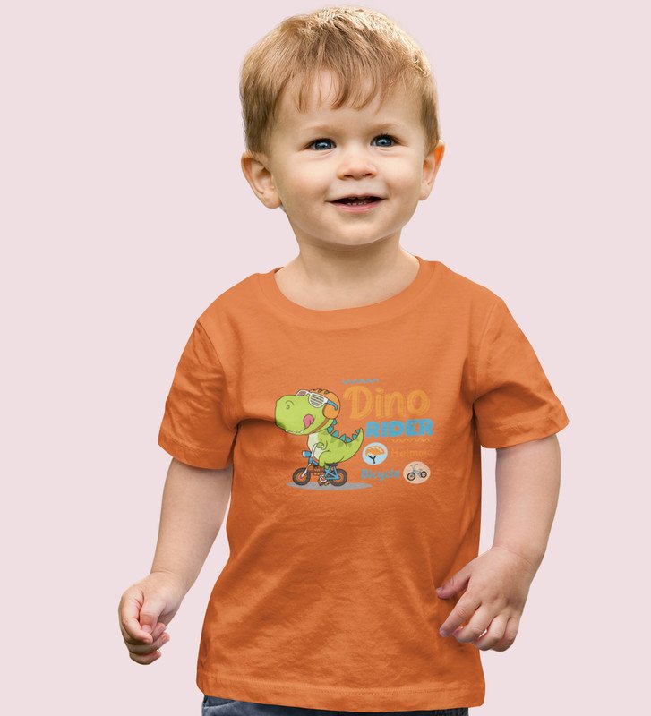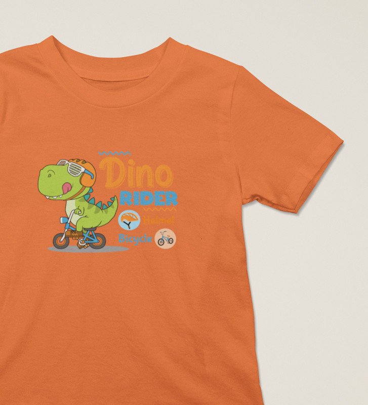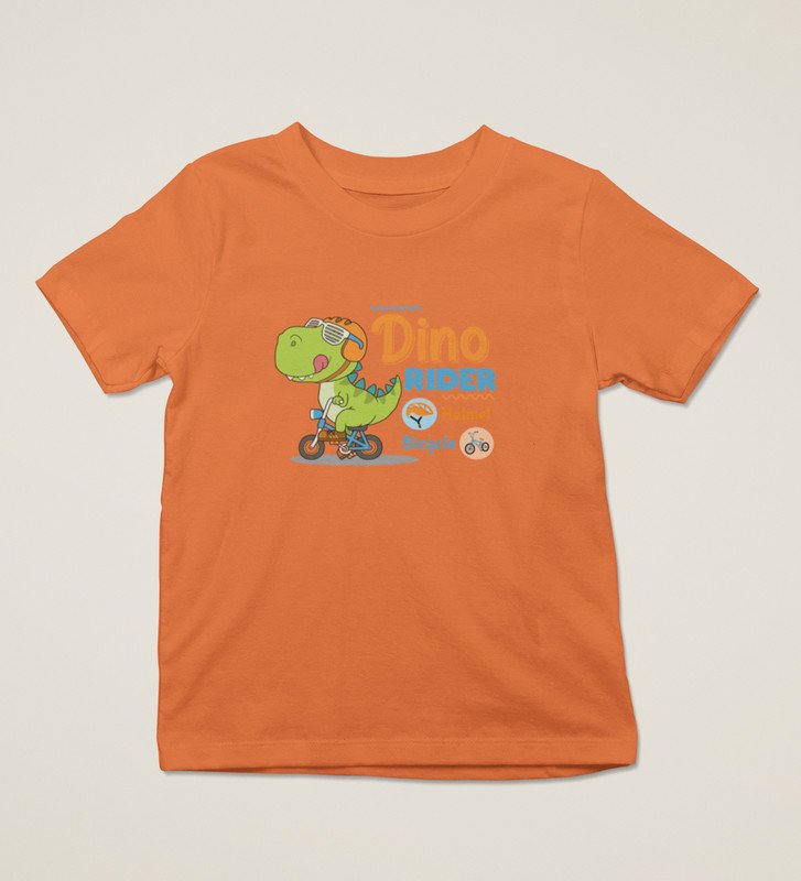 Dino Rider, Boys Round Neck Printed Blended Cotton T-shirt (orange)