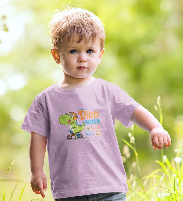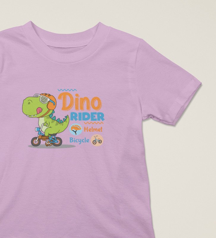 Dino Rider, Boys Round Neck Printed Blended Cotton T-shirt (Purple)
