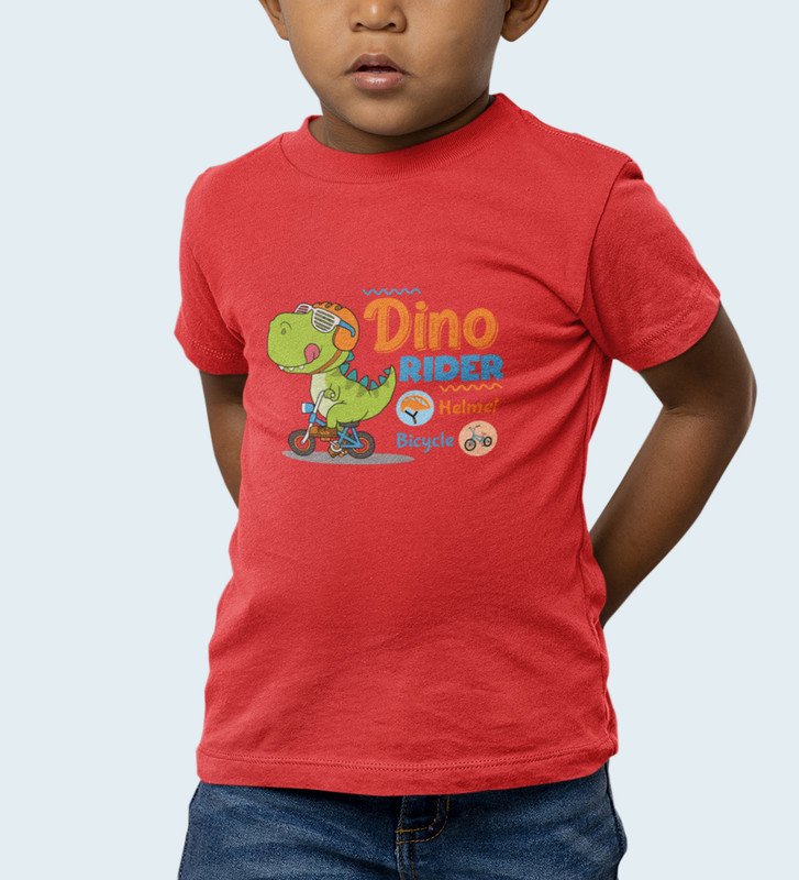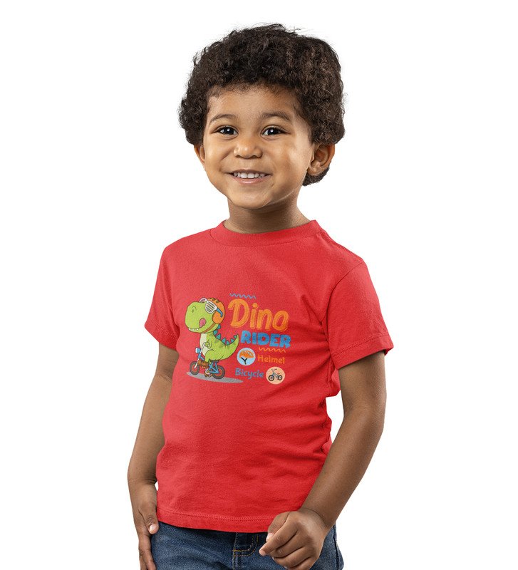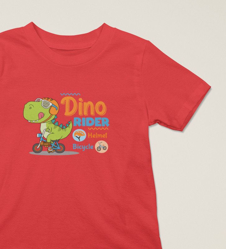Dino Rider, Boys Round Neck Printed Blended Cotton Tshirt