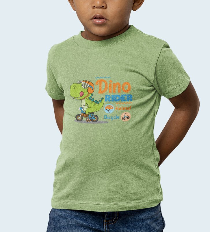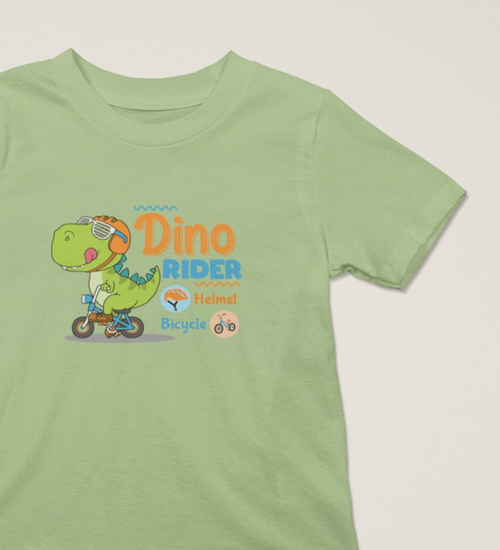 Dino Rider, Boys Round Neck Printed Blended Cotton Tshirt