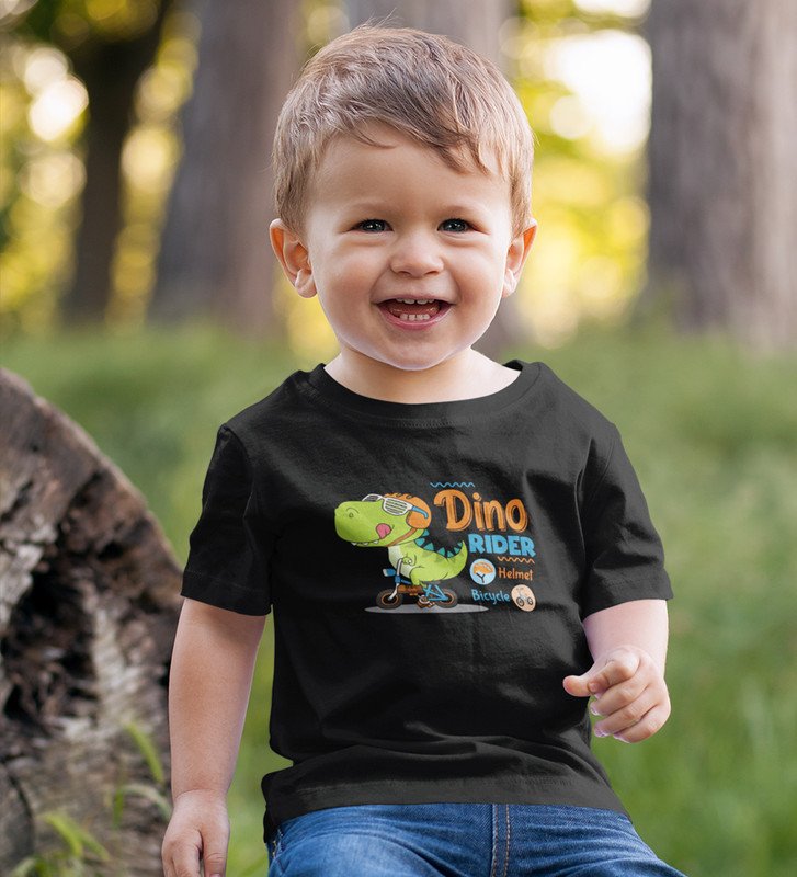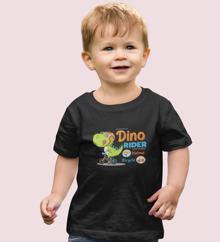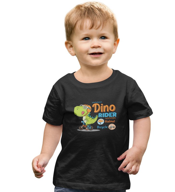 Dino Rider, Boys Round Neck Printed Blended Cotton Tshirt (black)