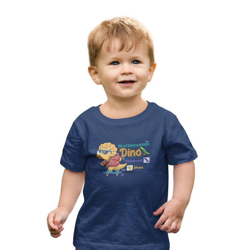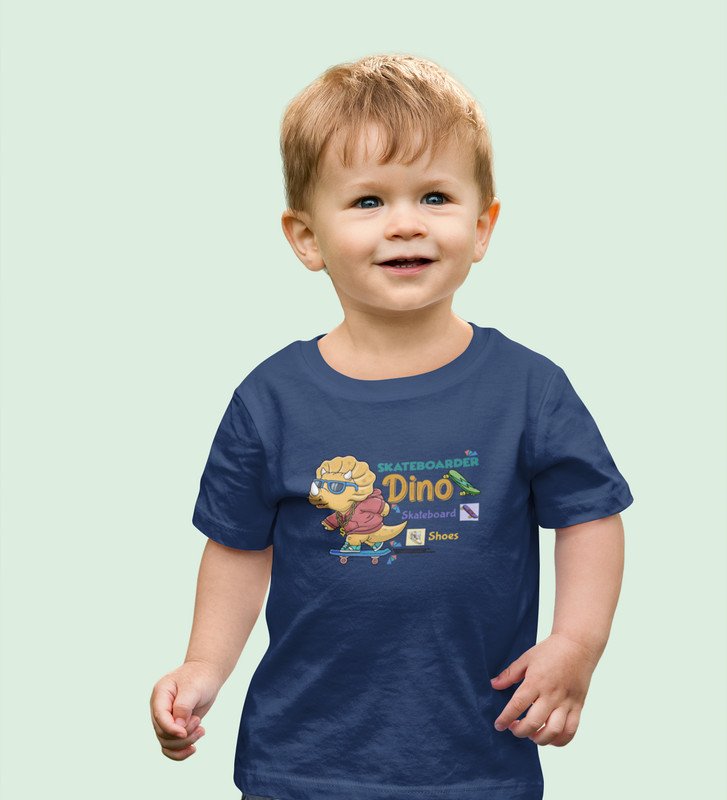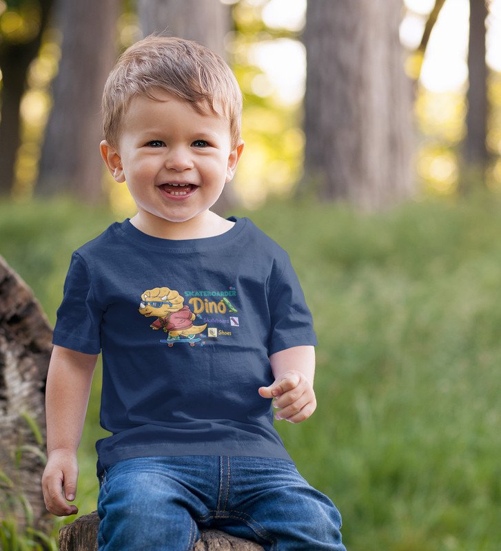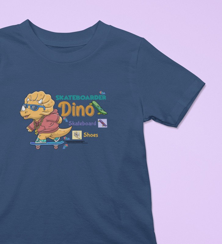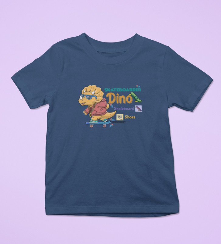 Dino Skater, Printed Cotton T-shirt (Navy Blue) for Boys