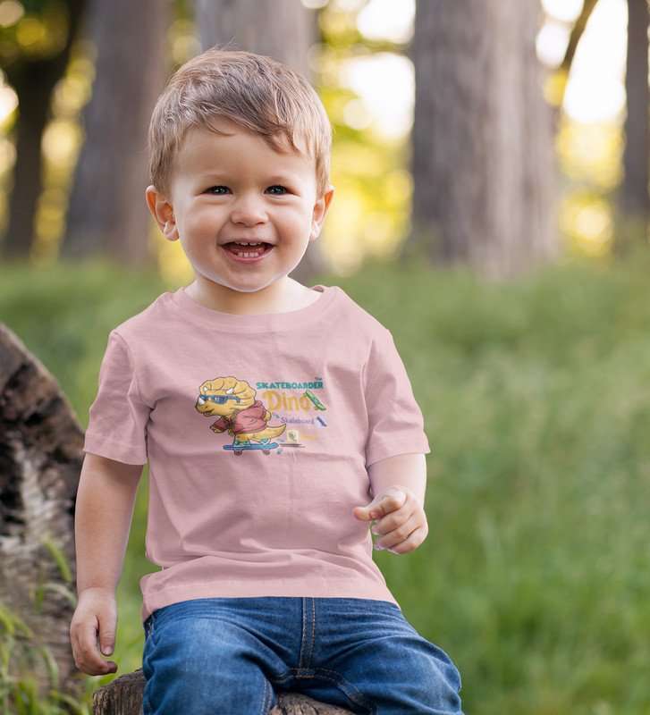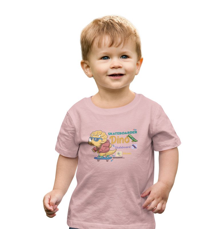 Dino Skater, Printed Cotton Tshirt (baby pink) for Boys