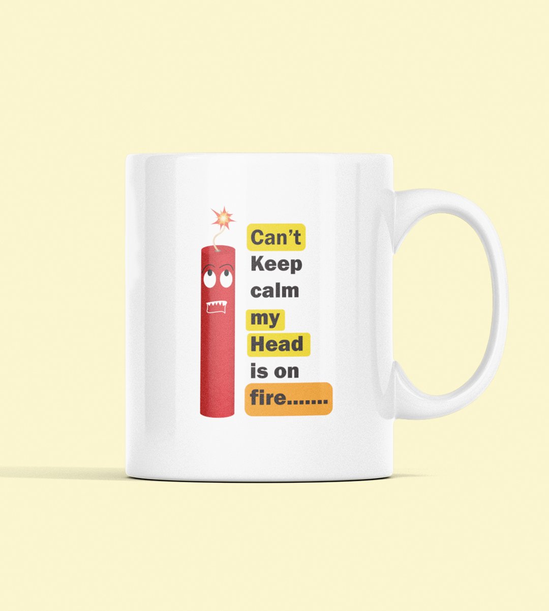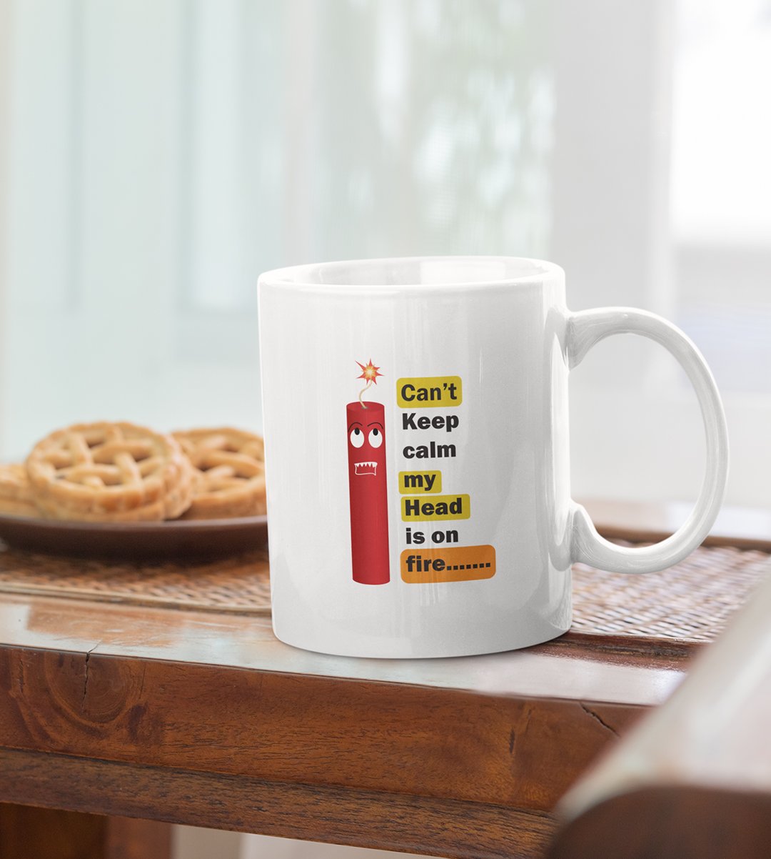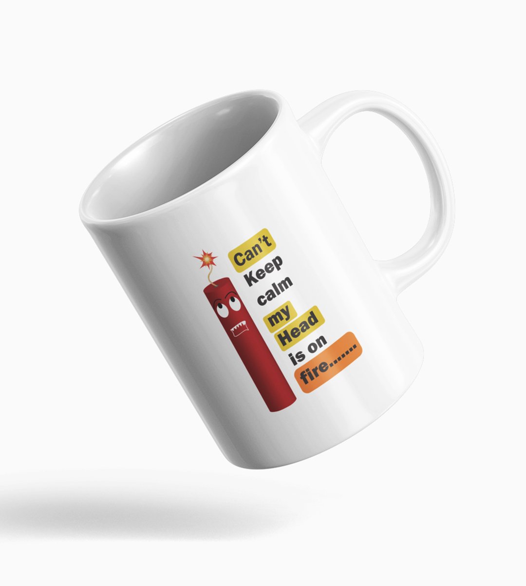Dive into the excitement of Diwali with our "Diwali Cracker Frenzy" Coffee Mug. The playful cracker cartoon and the dialogue "Can't Keep Calm, My Head is on Fire" perfectly capture the spirited energy of the festival. Sip your coffee and embrace the lively Diwali vibes with this entertaining design.