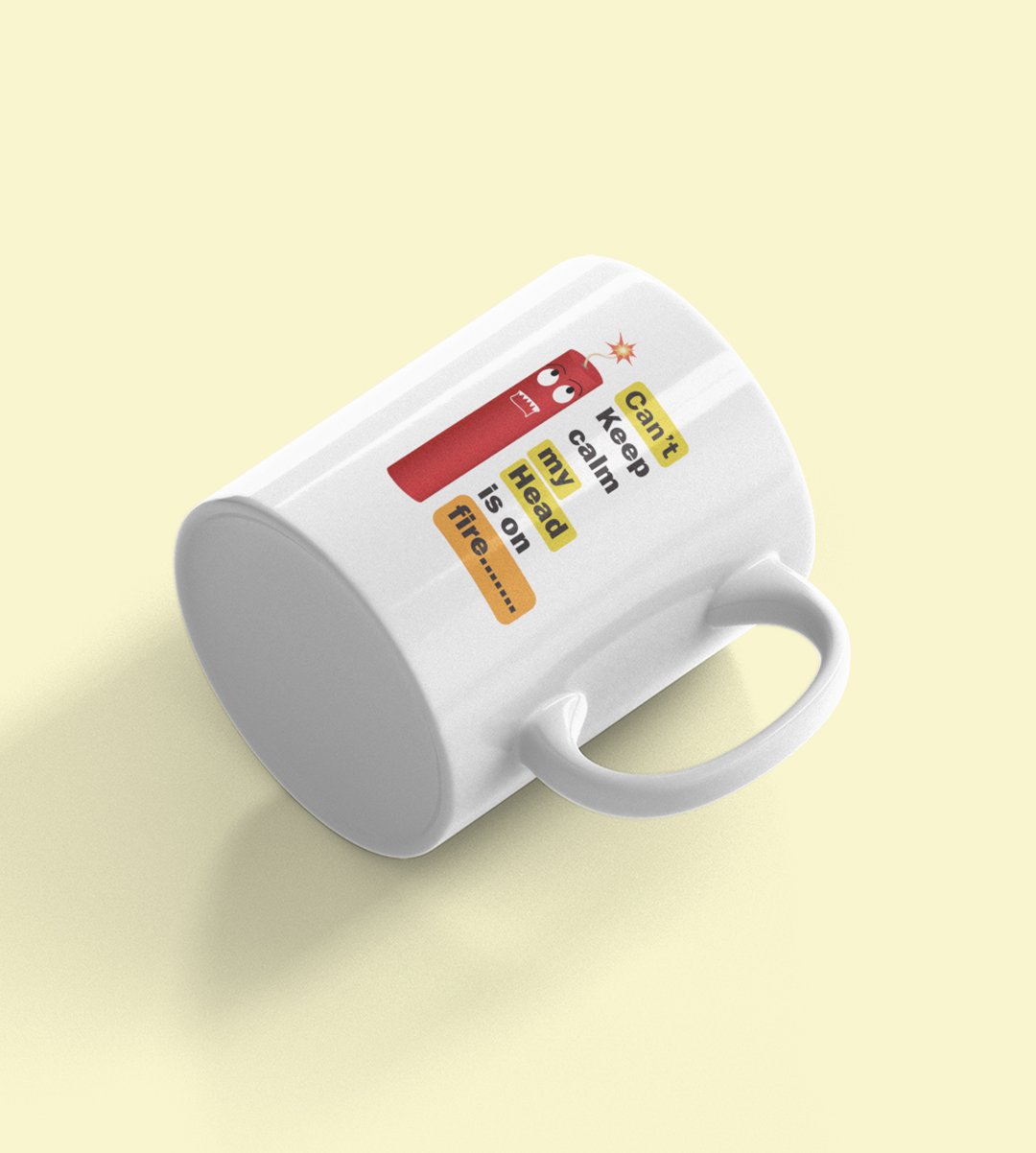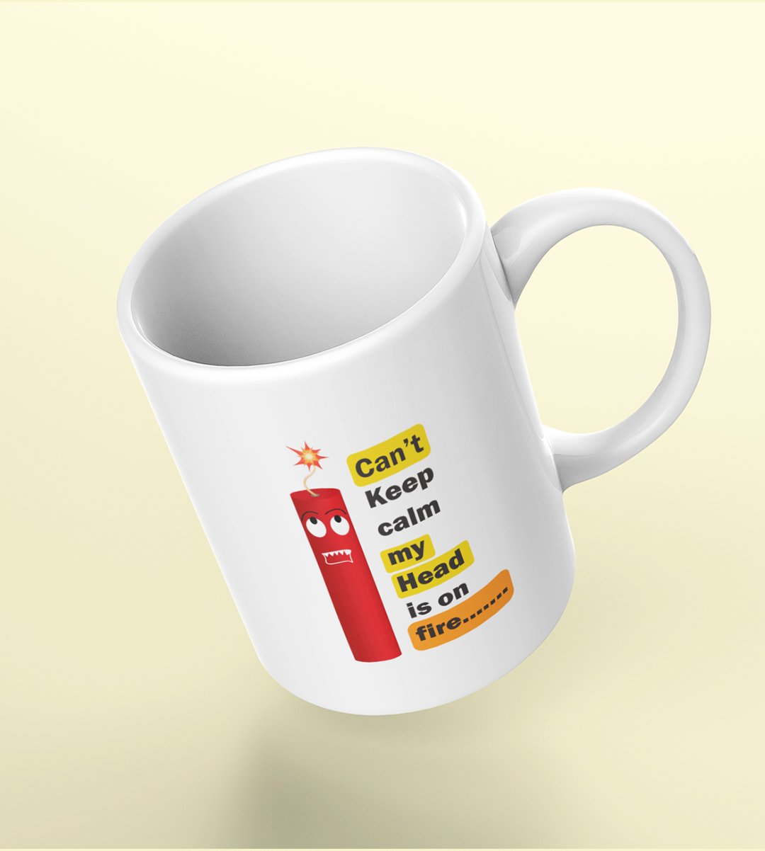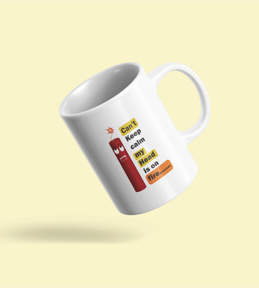 Dive into the excitement of Diwali with our "Diwali Cracker Frenzy" Coffee Mug. The playful cracker cartoon and the dialogue "Can't Keep Calm, My Head is on Fire" perfectly capture the spirited energy of the festival. Sip your coffee and embrace the lively Diwali vibes with this entertaining design.