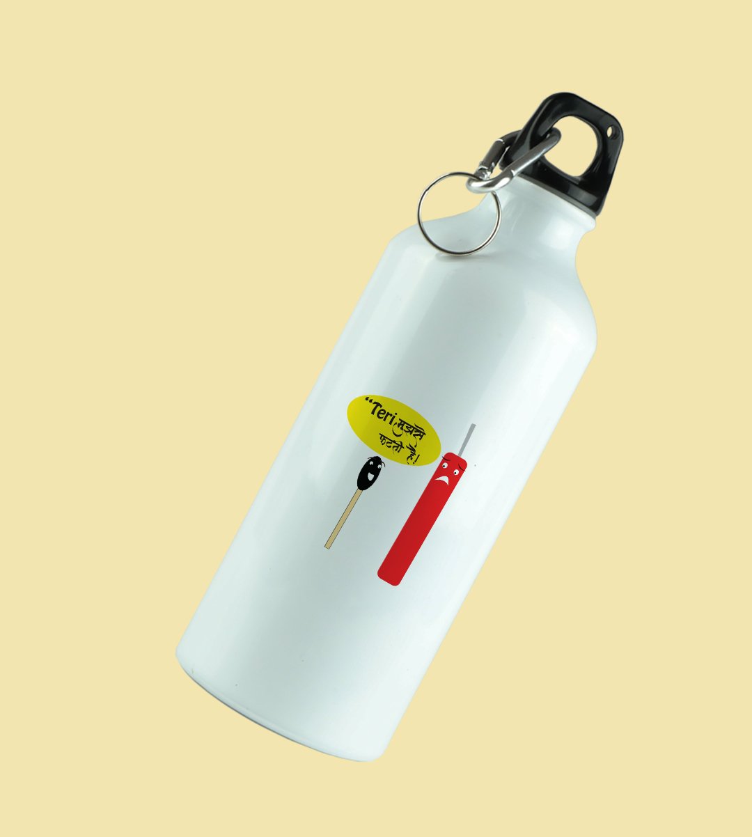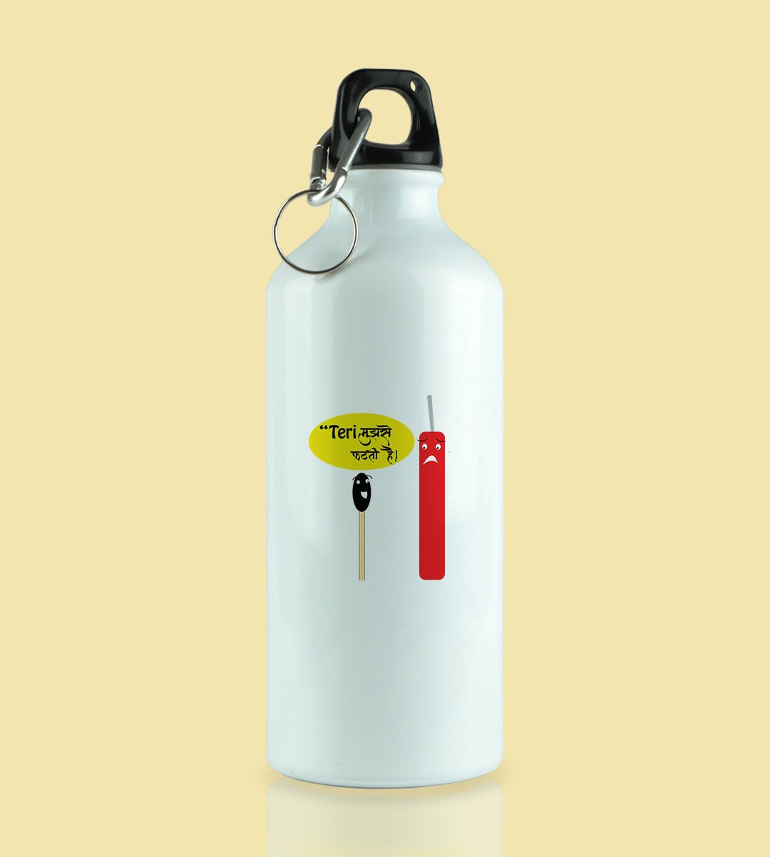 Unleash the laughter with our "Diwali Cracker Fun" sipper bottle. This design captures the hilarious 'Teri Mujhse Fatthi Hai' moment when the Diwali cracker takes an unexpected turn. Sip your coffee and revel in the comic spirit of Diwali with this lighthearted sipper bottle.
