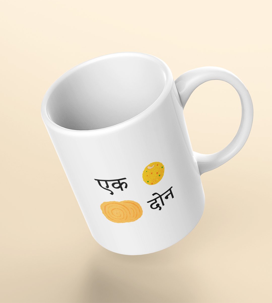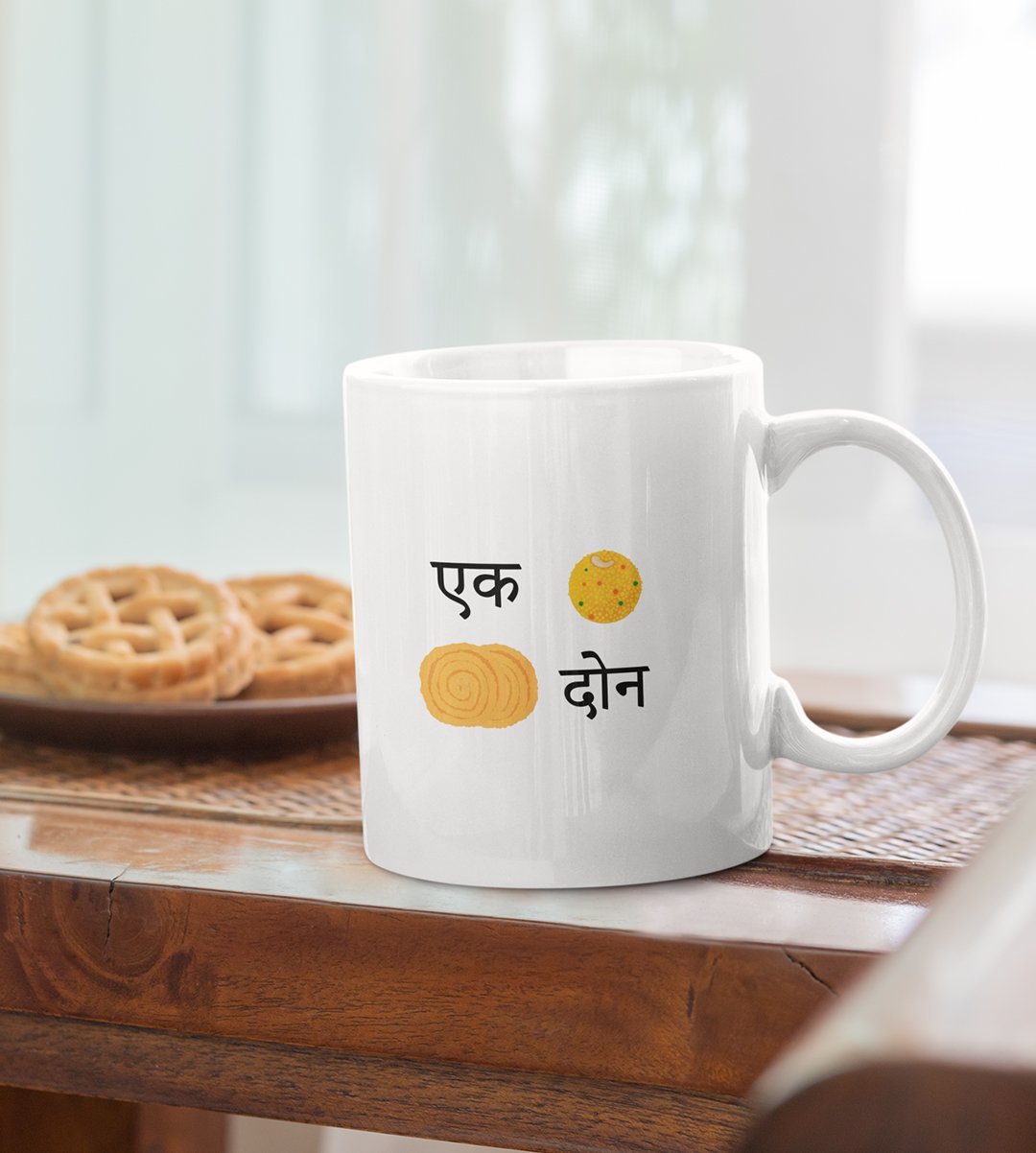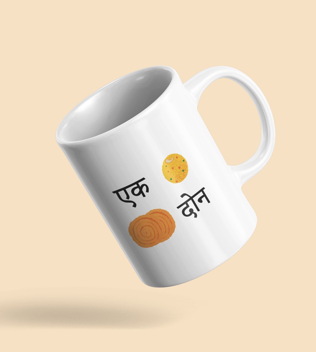 Celebrate the delectable delights of Diwali with our "Diwali Snack Delight" Coffee Mug. This delightful design showcases the perfect combination of 1 Ladoo and 2 Chakli, a treat for your taste buds. Sip your coffee and indulge in the joy of Diwali snacking with this mouthwatering mug.