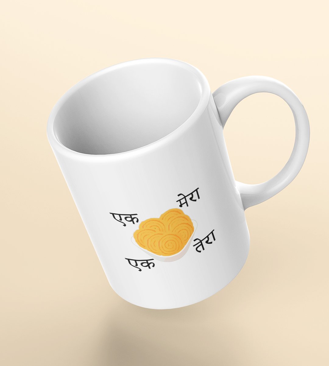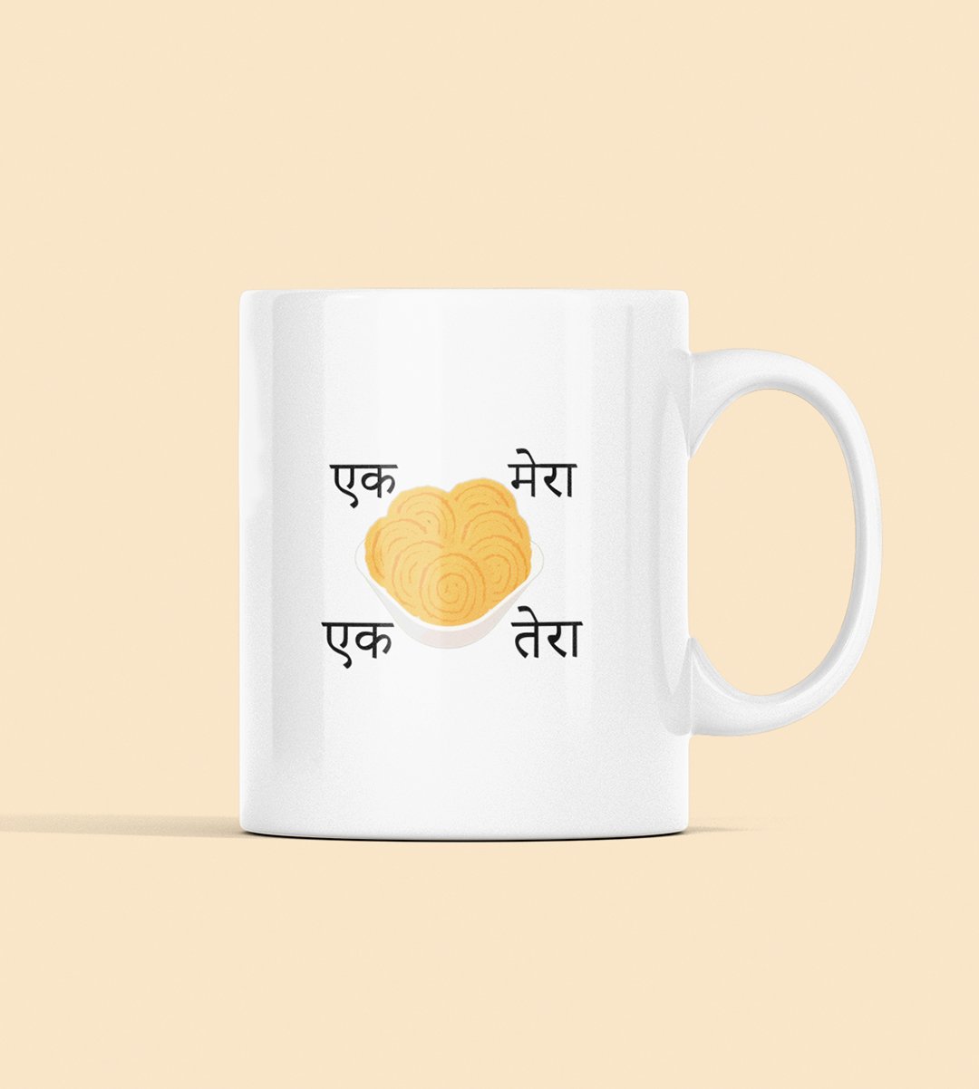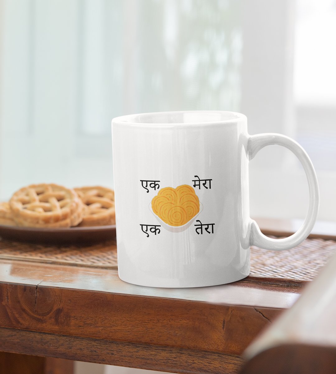 Embrace the delightful world of Diwali snacks with our "Diwali Snack Delight" Coffee Mug. The playful message "Ek Chakli Mera, Ek Chakli Tera" adds a lighthearted touch to your Chakli celebration, capturing the essence of festive snacking. Sip your coffee and enjoy the flavors of Diwali with this joyful mug.