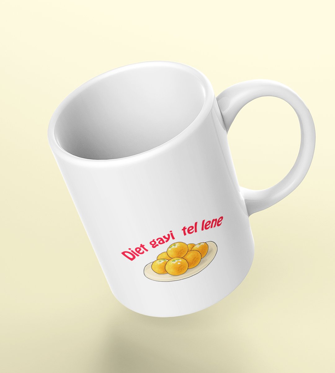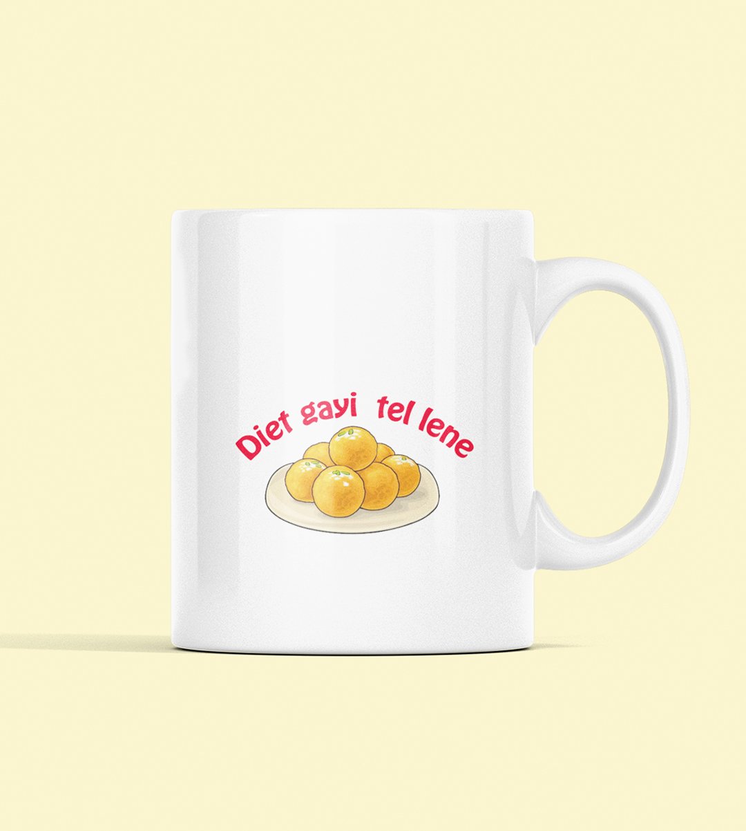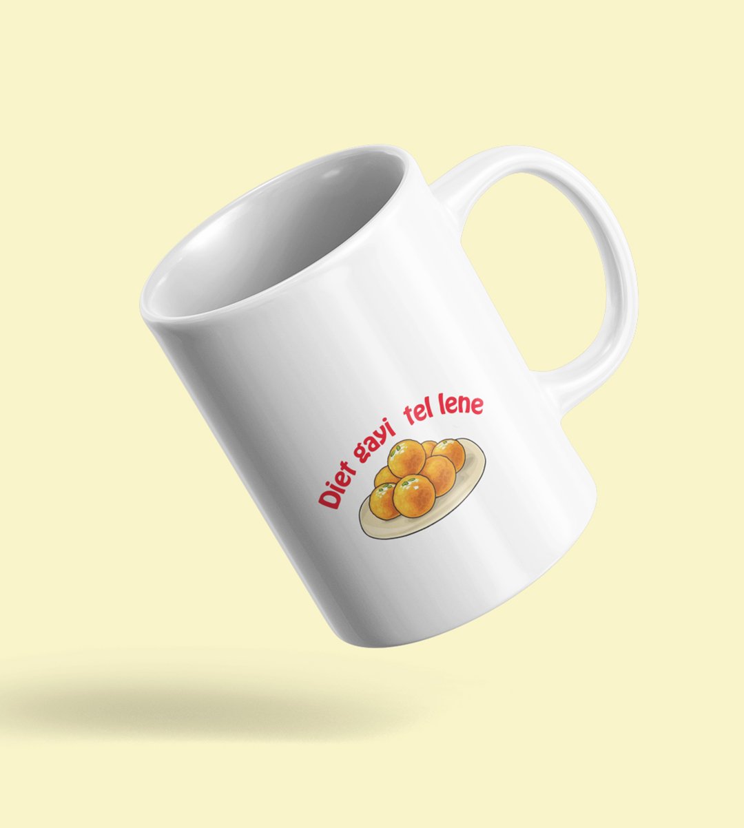 Celebrate the irresistible sweet temptations of Diwali with our "Diwali Sweet Temptations" Coffee Mug. The humorously relatable message "Diet Gayi Tel Lene" captures the struggle to resist delectable treats. Sip your coffee and enjoy a guilt-free laugh over Diwali's culinary indulgences.