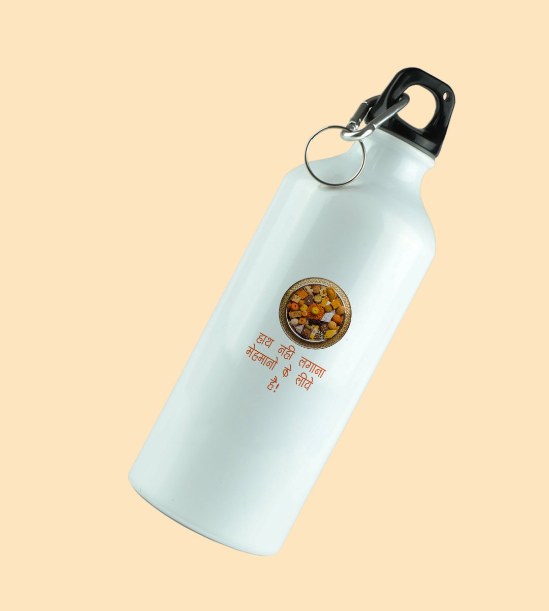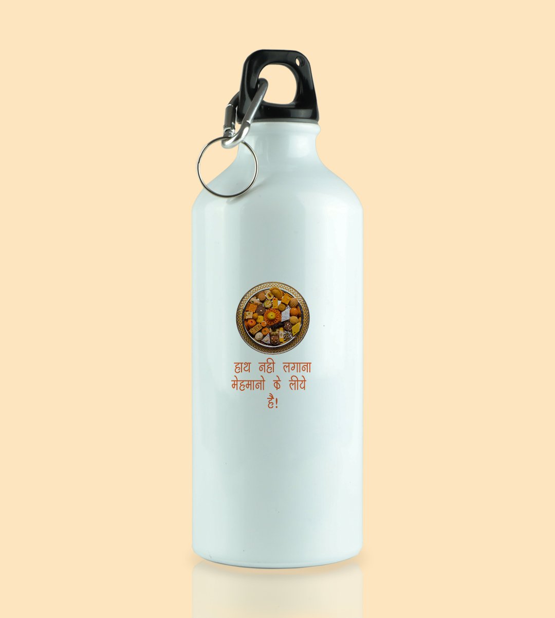 This Diwali, honor the traditions of hospitality with our "Hath Nai Lagana" sipper bottle. Adorned with an image of sweets, it's a delightful reminder that these treats are reserved for guests during the festival. Share the warmth and heritage of Diwali with this charming design.