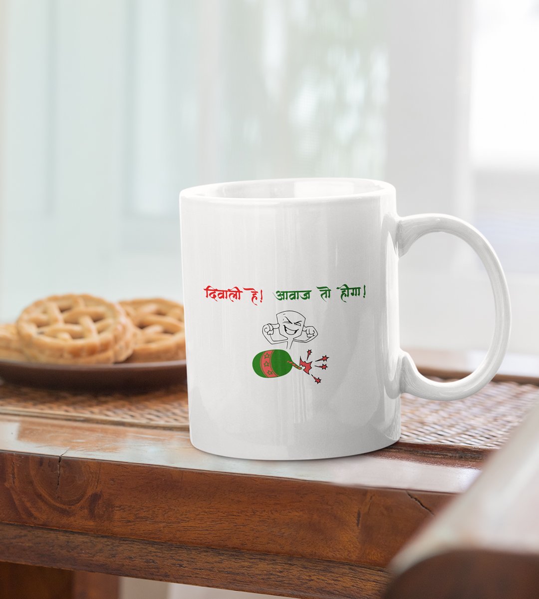 Embrace the Diwali vibes with our "Diwali Vibe" Coffee Mug. The spirited message "Diwali Hai, Awaj tho Hoga!" captures the essence of celebration and the joyous sound of crackers. Sip your coffee and immerse yourself in the festive spirit with this lively design