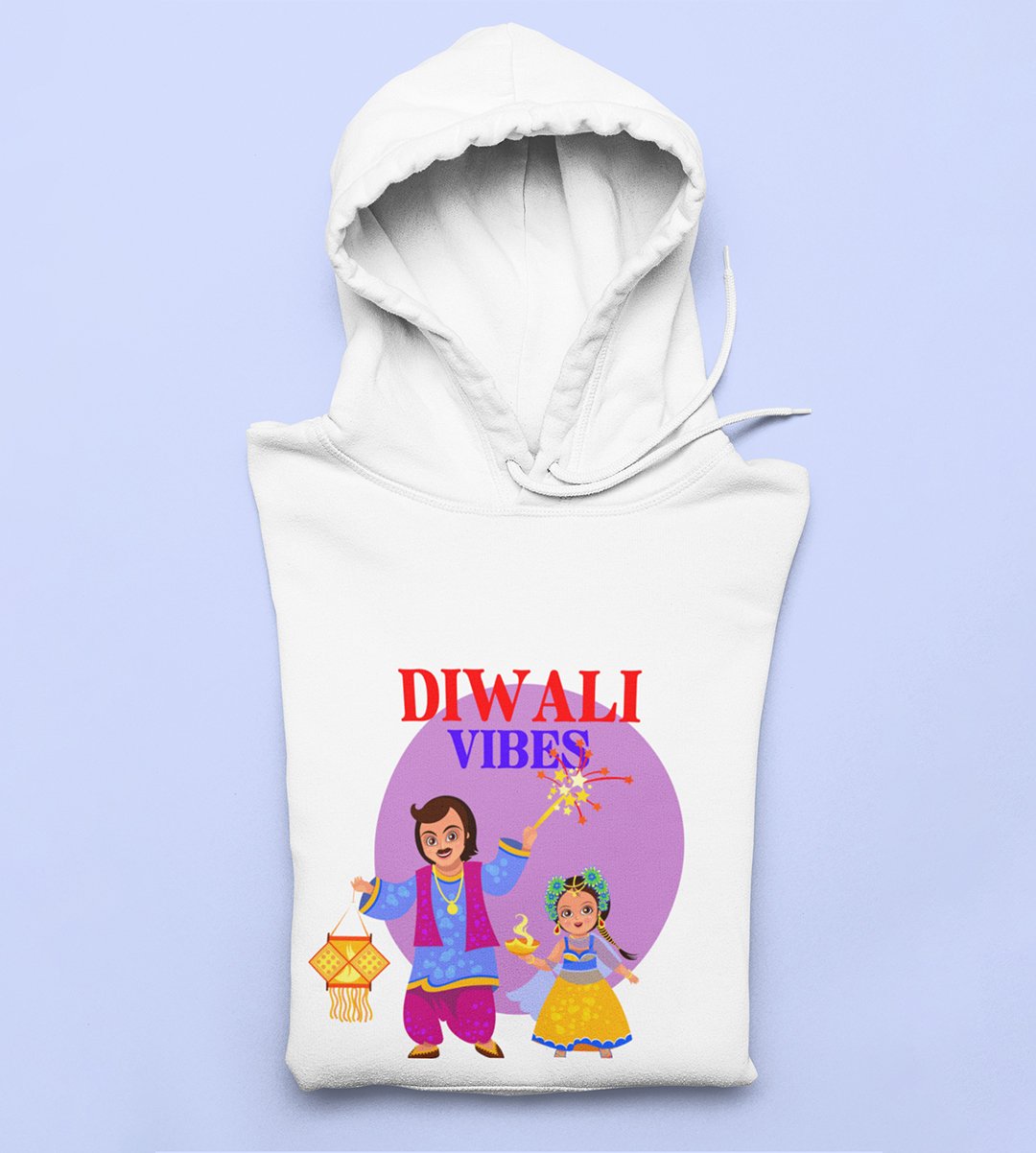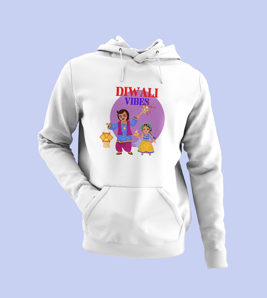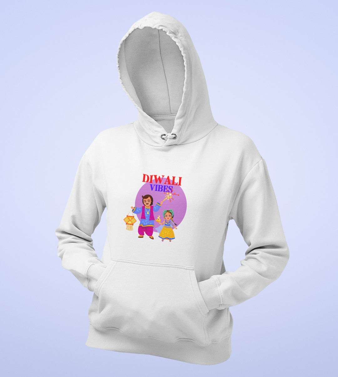 Diwali vibes printed diwali themed White Hoodie specially for diwali festival