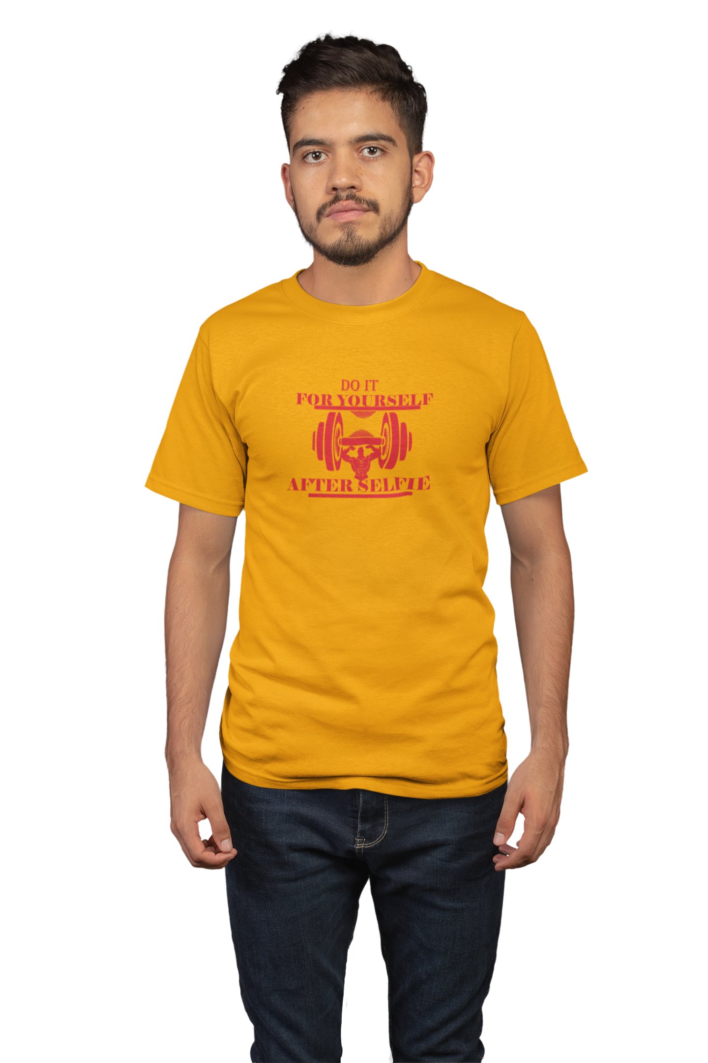 Do It for Yourself, After Selfie Round Neck Gym Tshirt (Yellow Tshirt) - Clothes for Gym Lovers - Foremost Gifting Material for Your Friends and Close Ones