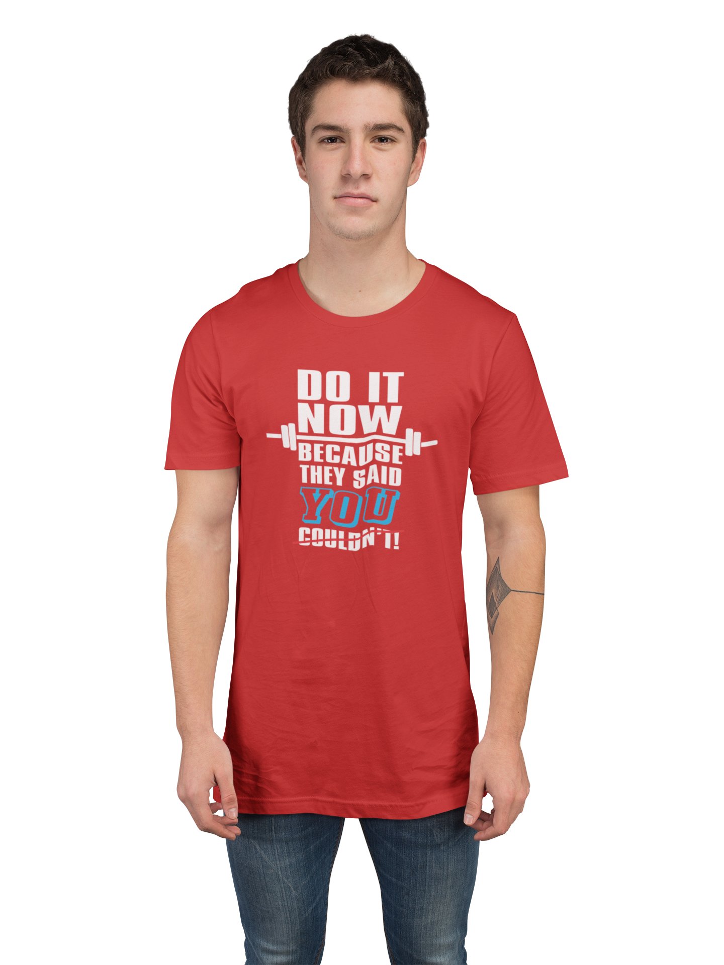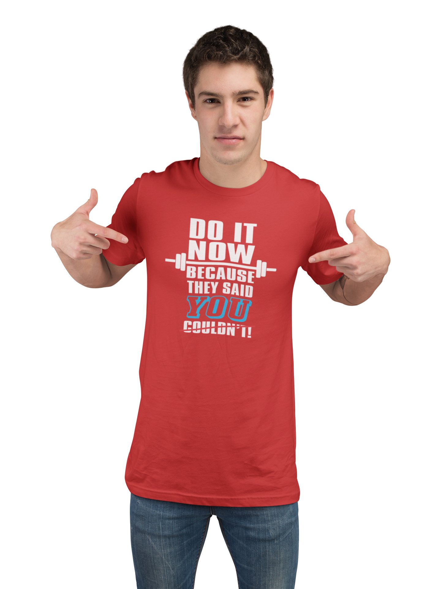 Do It Now, Because They Said You Couldn't (BG Yellow and Blue), Round Neck Gym Tshirt (Red Tshirt) - Clothes for Gym Lovers - Foremost Gifting Material for Your Friends and Close Ones