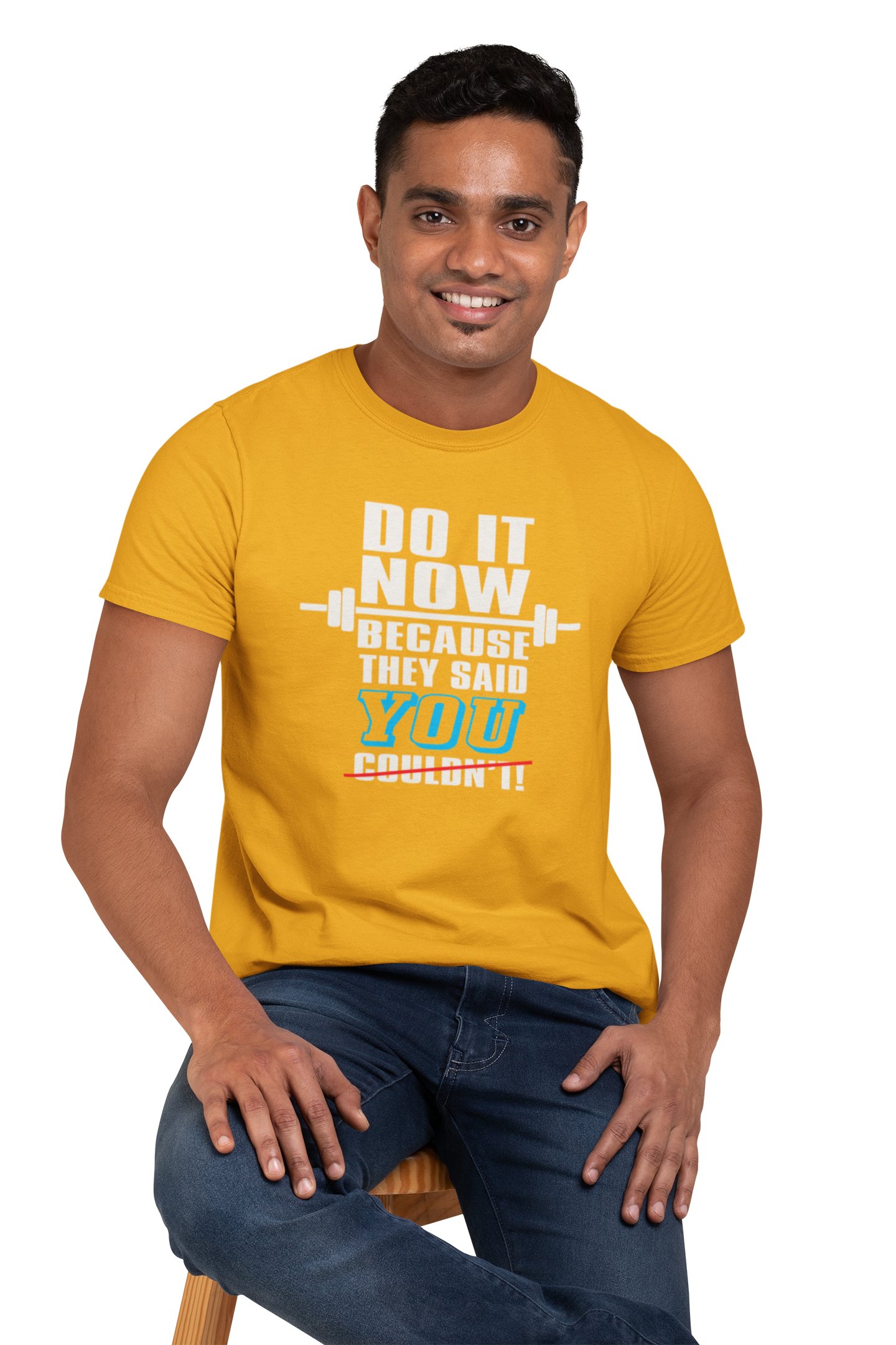 Do It Now, Round Neck Gym Tshirt (White) (Yellow Tshirt) - Clothes for Gym Lovers - Suitable for Gym Going Person - Foremost Gifting Material for Your Friends and Close Ones