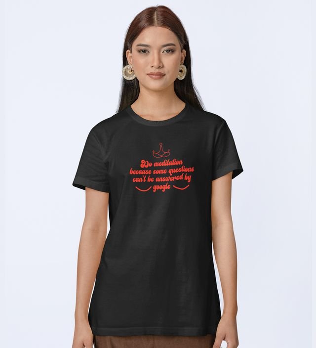 Do Meditation Black Round Neck Cotton Half Sleeved WomenT-Shirt with Printed Graphics