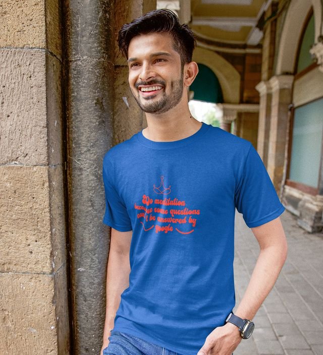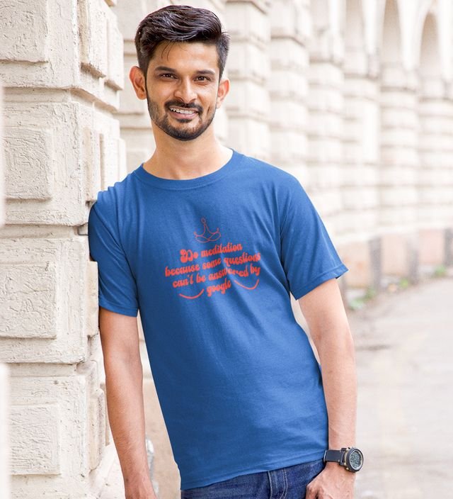 Do Meditation Blue Round Neck Cotton Half Sleeved Men T-Shirt with Printed Graphics
