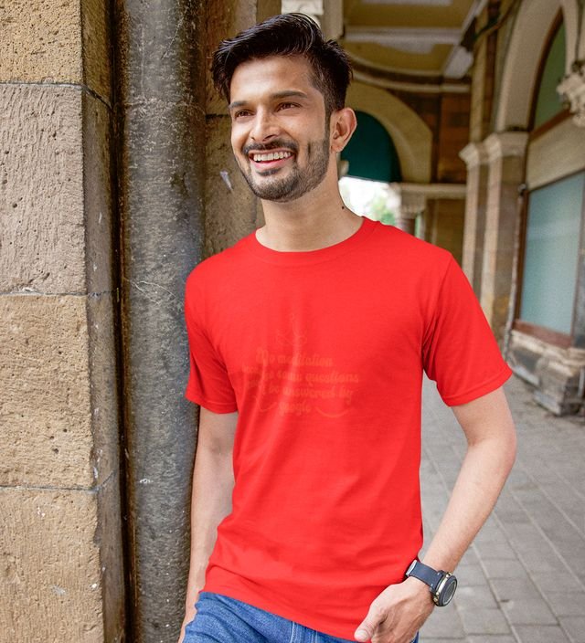 Do Meditation Red Round Neck Cotton Half Sleeved Men T-Shirt with Printed Graphics