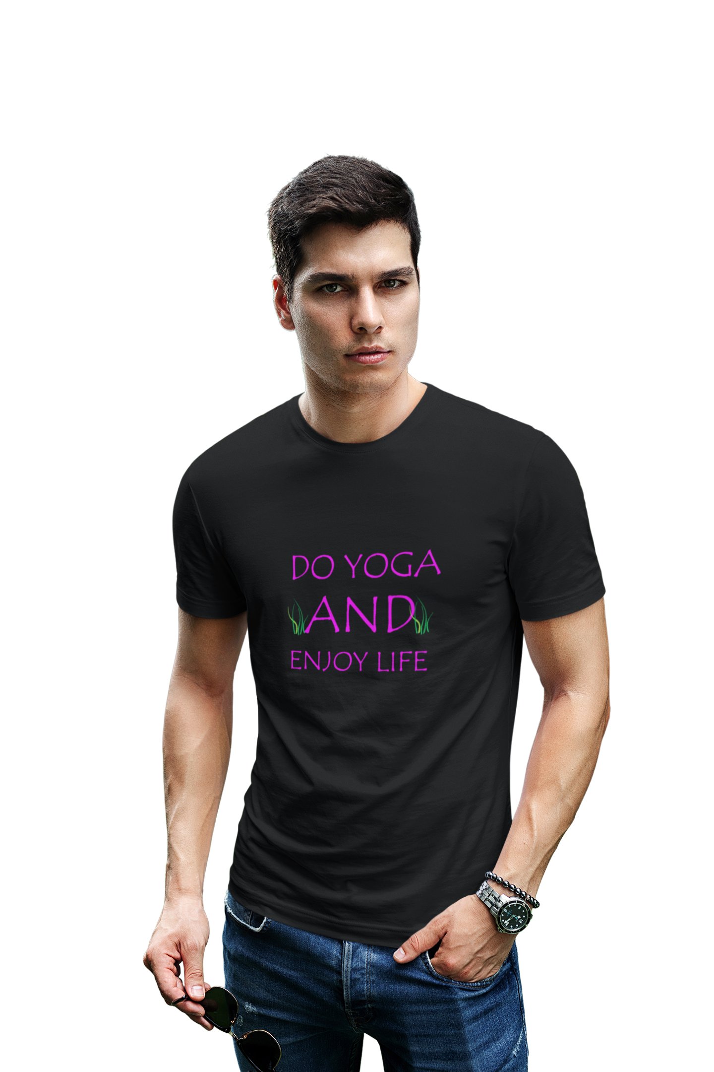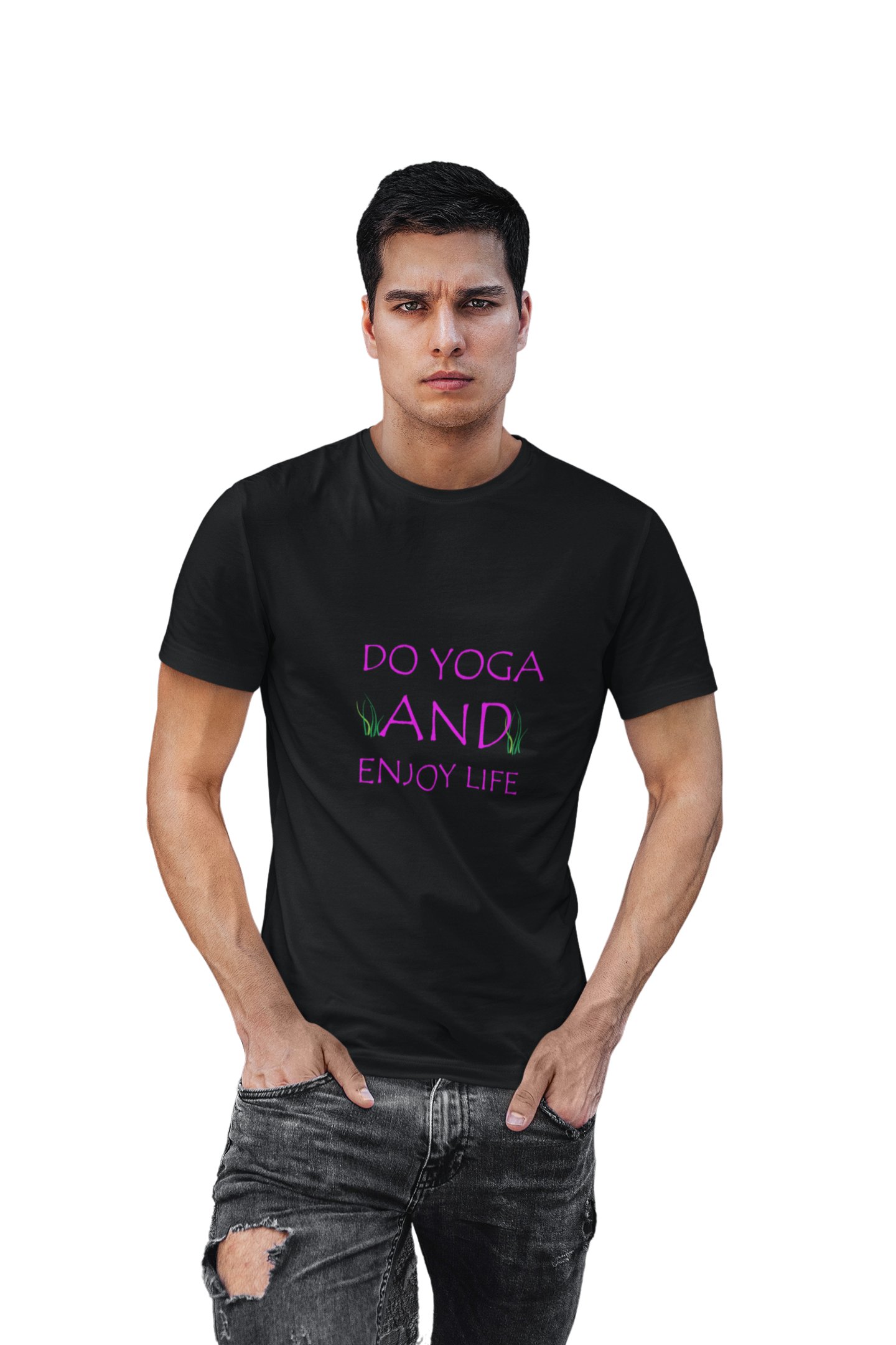 Do yoga and enjoy life text - Black - Comfortable Yoga T-shirts for Yoga Printed Men's T-shirts (Medium, Black)