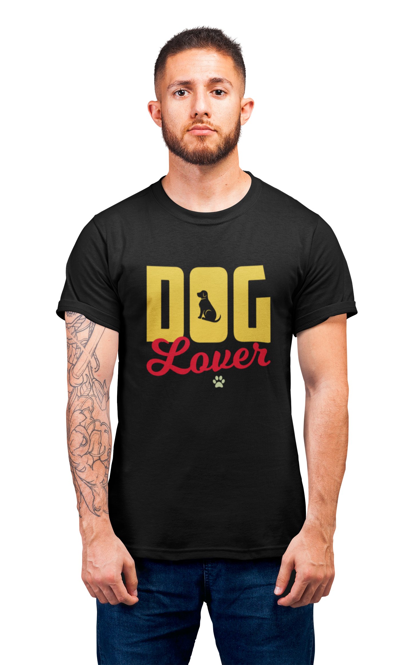 Dog lover Yellow And Red Text - printed stylish Black cotton tshirt- tshirts for men
