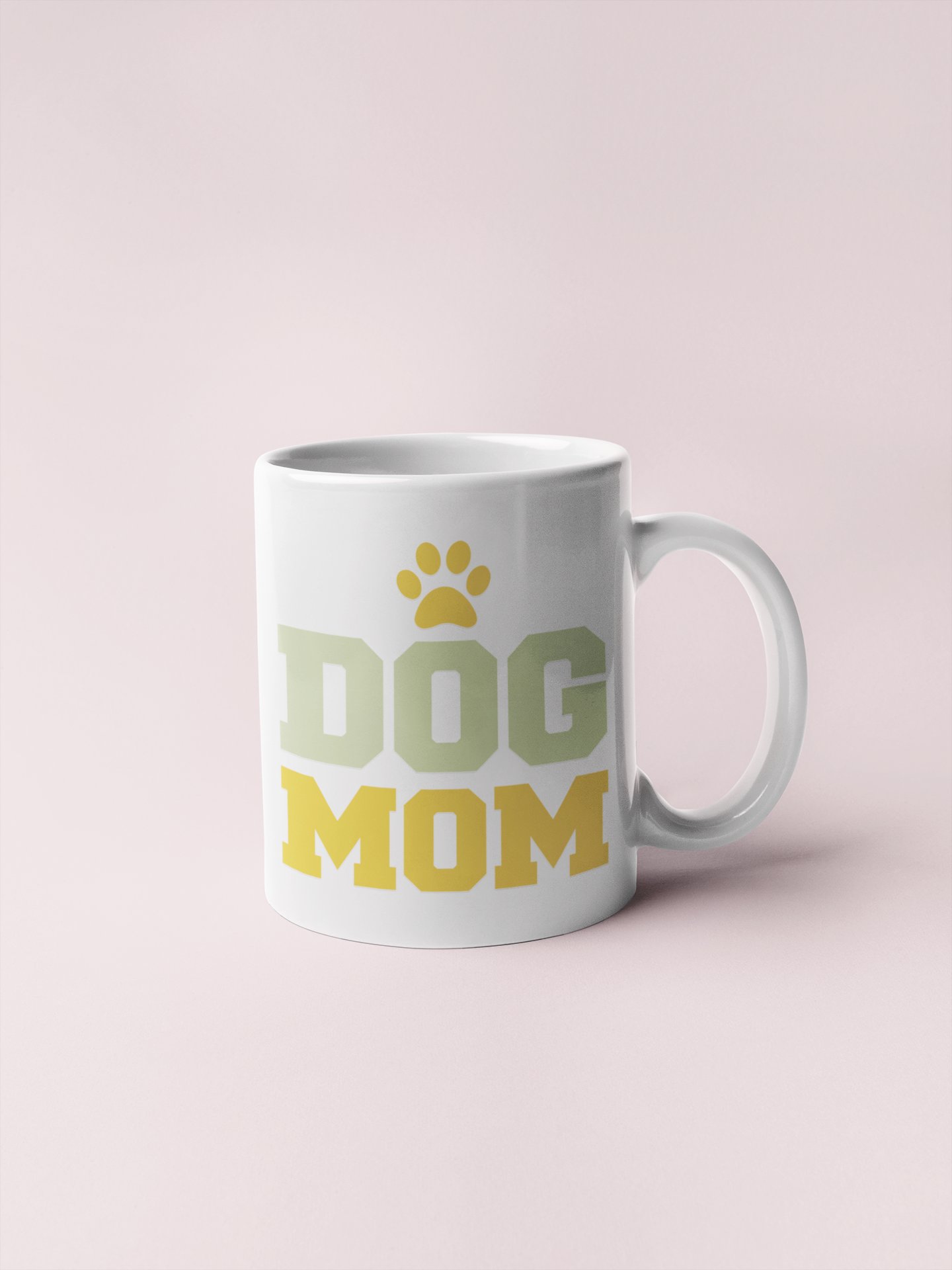Dog mom Light Green And yellow Text - pets themed printed ceramic white coffee and tea mugs/ cups for pets lover people
