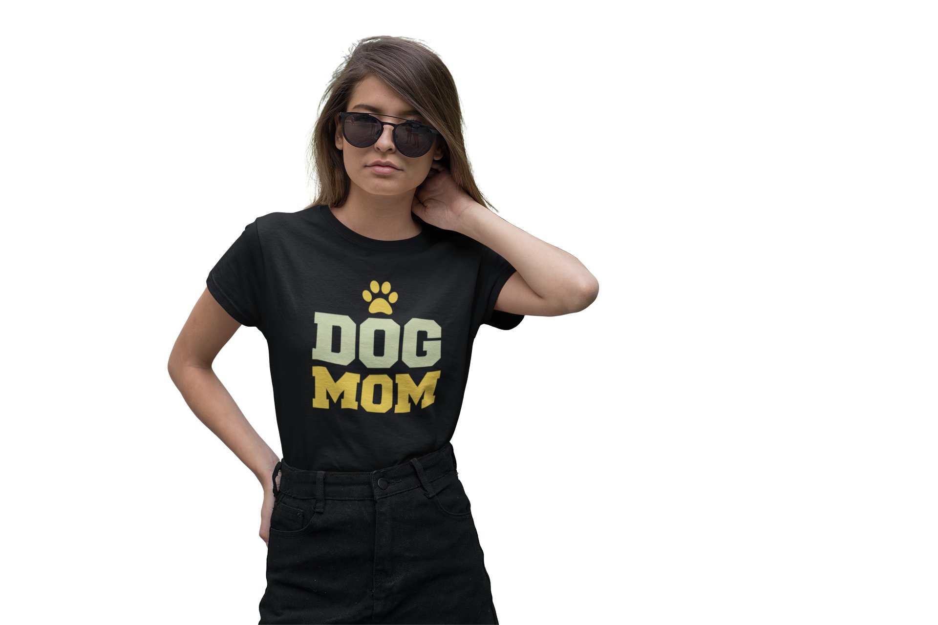 Dog mom Yellow And White Text-Black-printed cotton t-shirt - comfortable, stylish