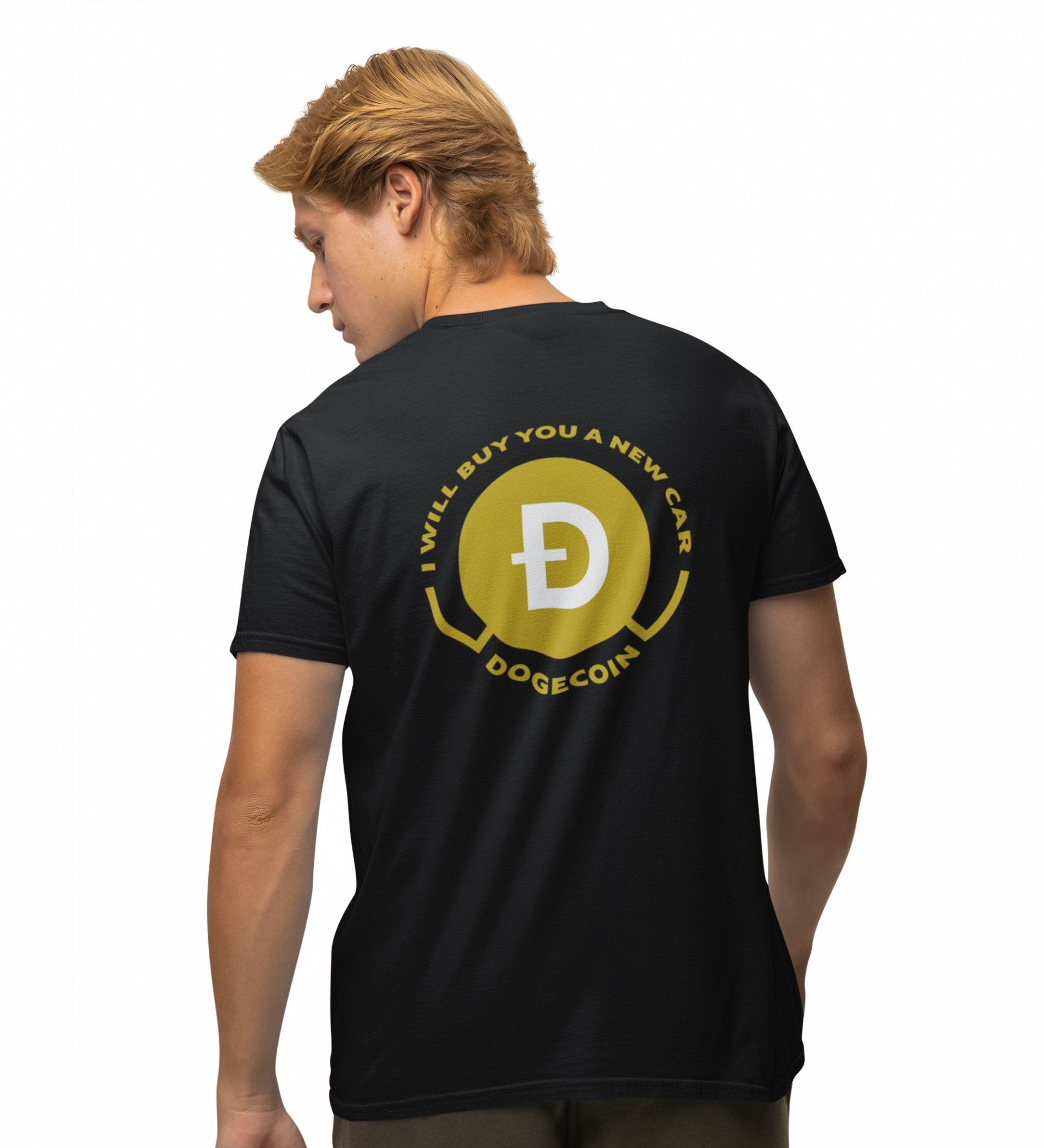 Dogecoin Promise Wings Black Round Neck Cotton Half Sleeved Men's T Shirt with Printed Graphics
