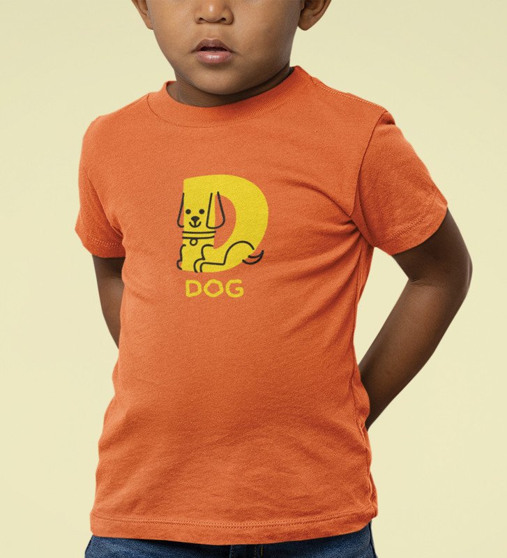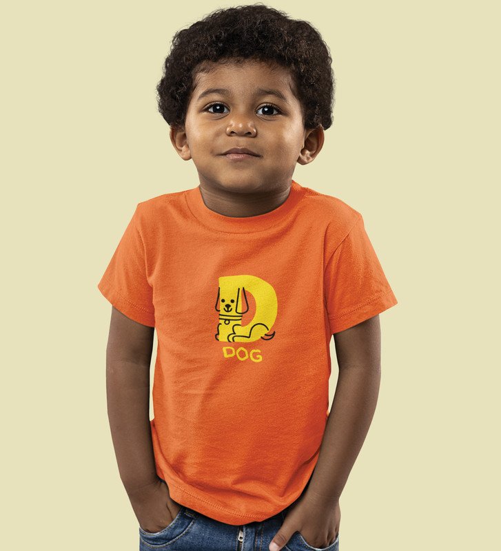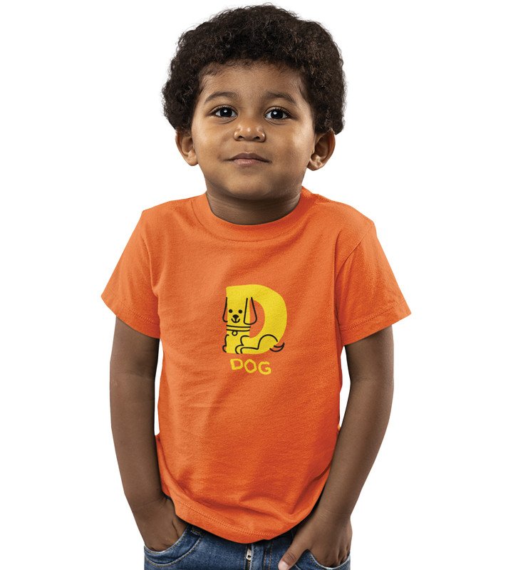 Doggy Dog, Boys Round Neck Printed Blended Cotton Tshirt (Orange)