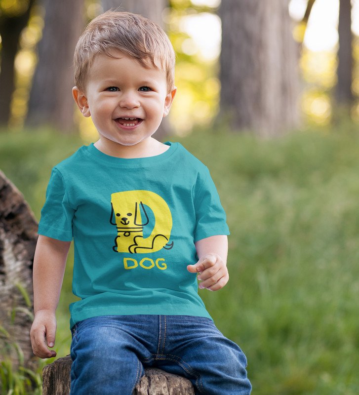 Doggy Dog, Boys Round Neck Printed Blended Cotton tshirt (teal)