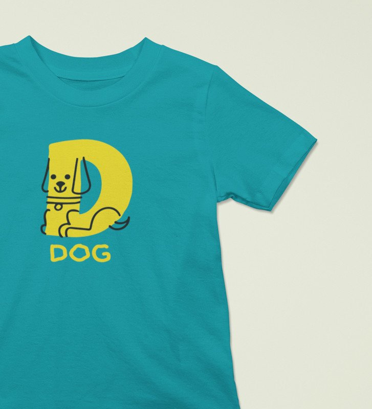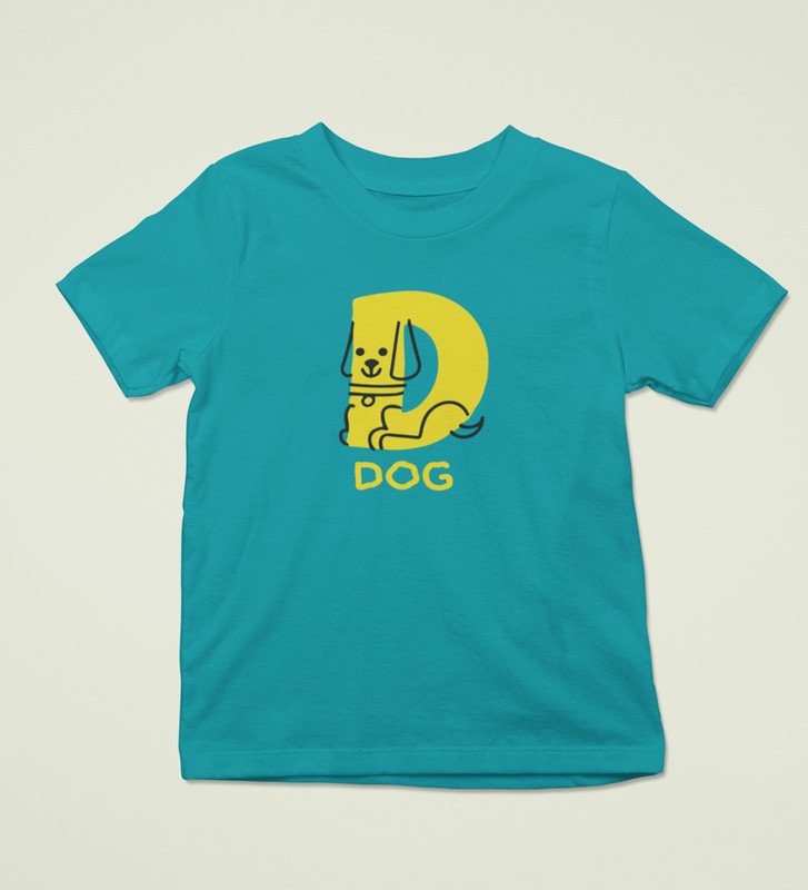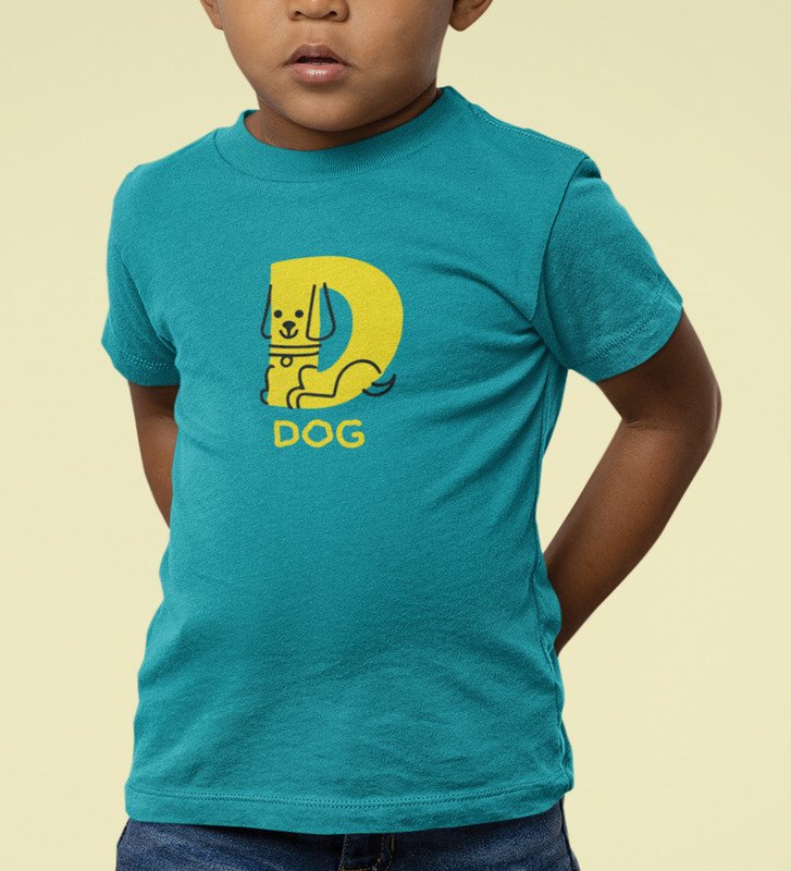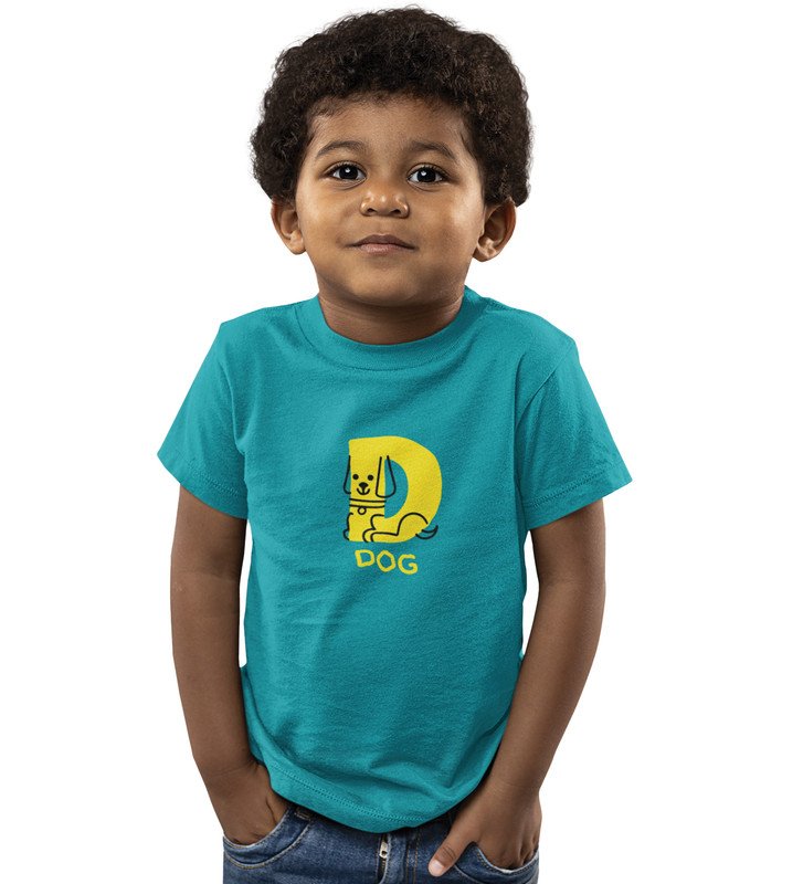 Doggy Dog, Boys Round Neck Printed Blended Cotton Tshirt (Teal)