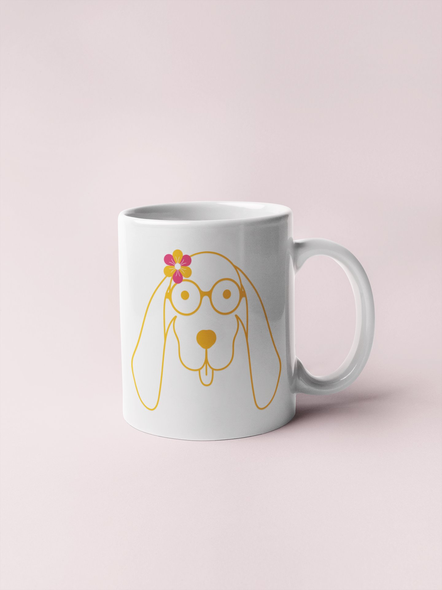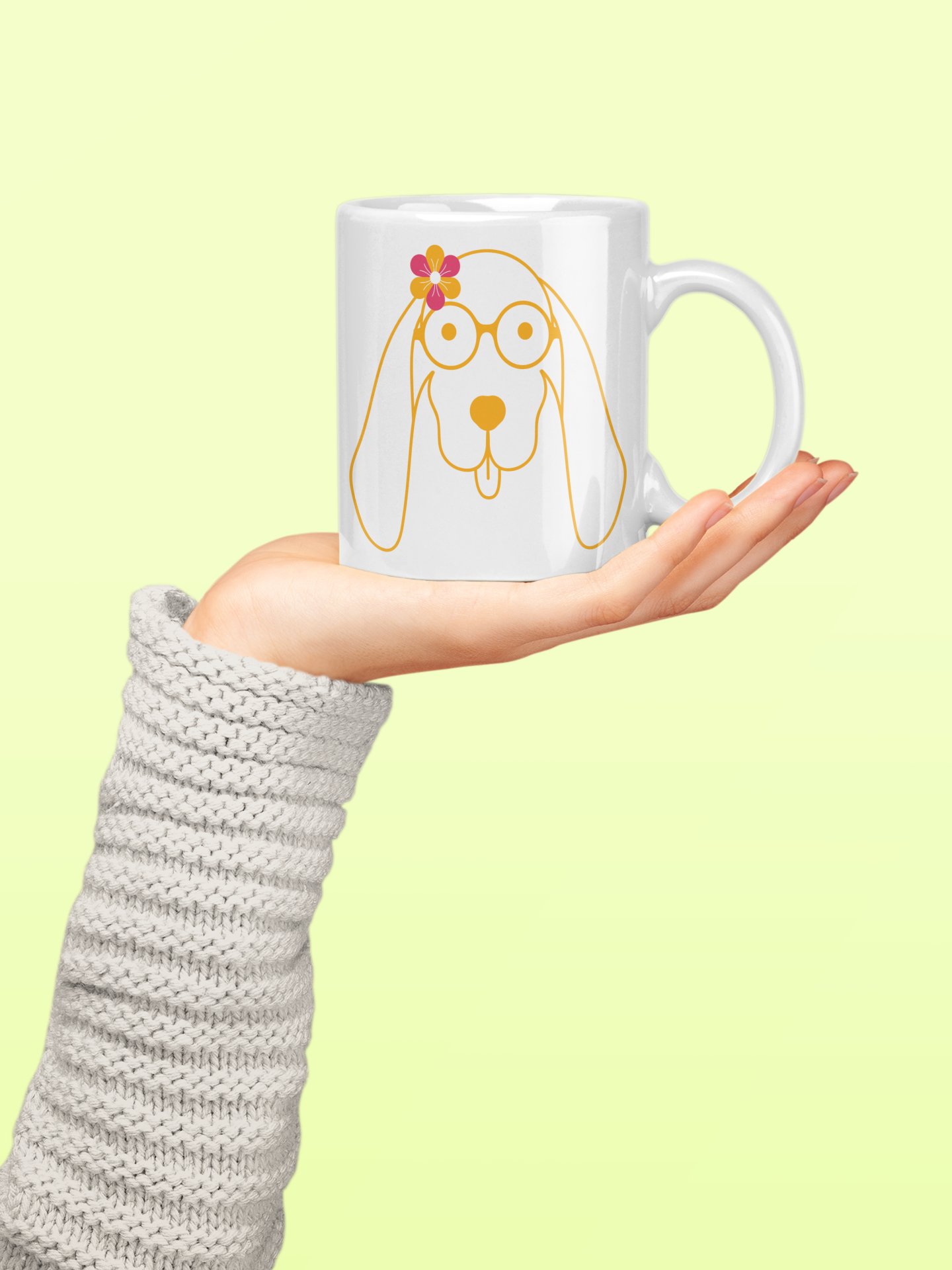 Doggy Face With Flower- pets themed printed ceramic white coffee and tea mugs/ cups for pets lover people