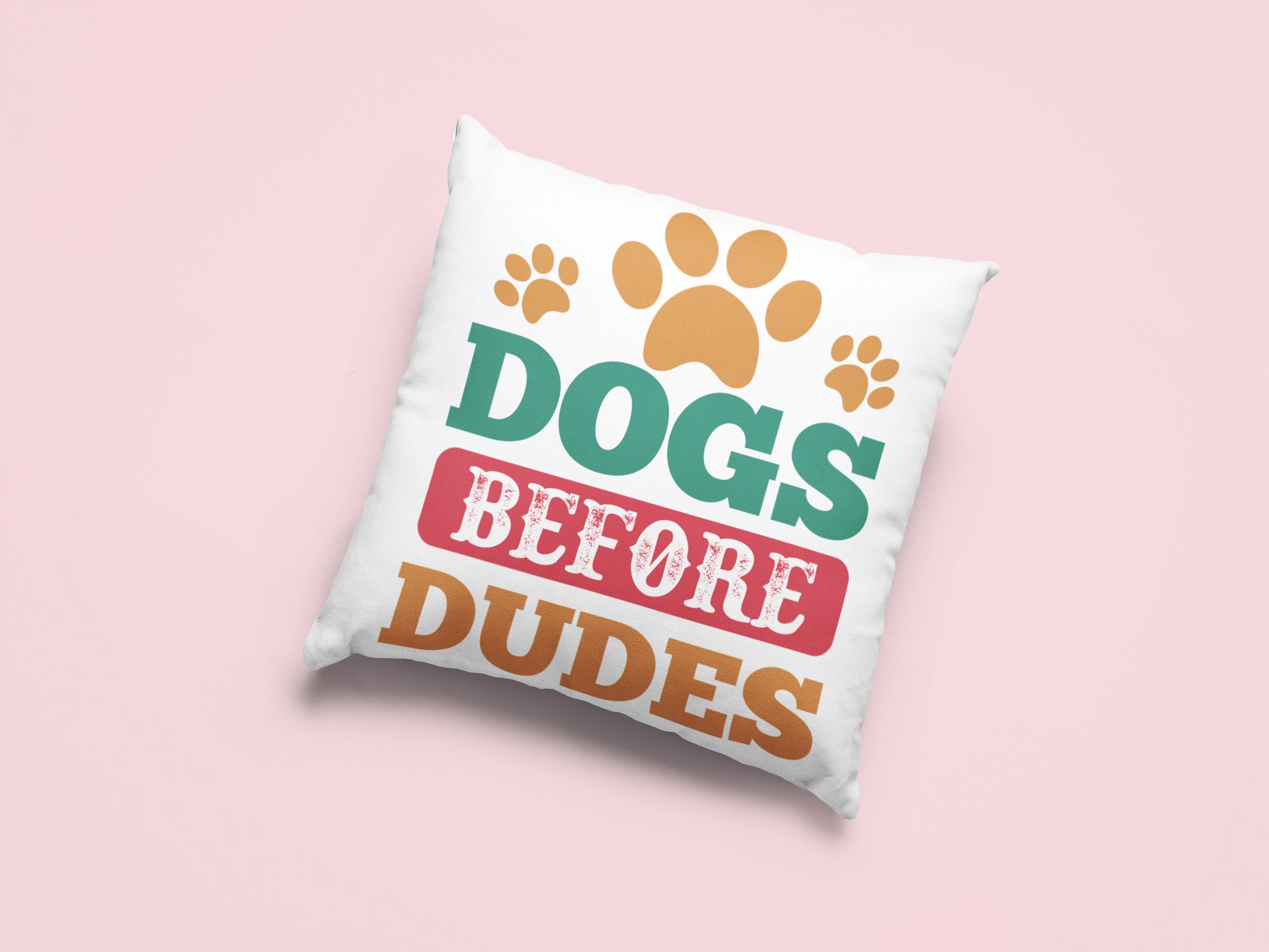 Dogs before dudes -Printed Pillow Covers For Pet Lovers(Pack Of Two)