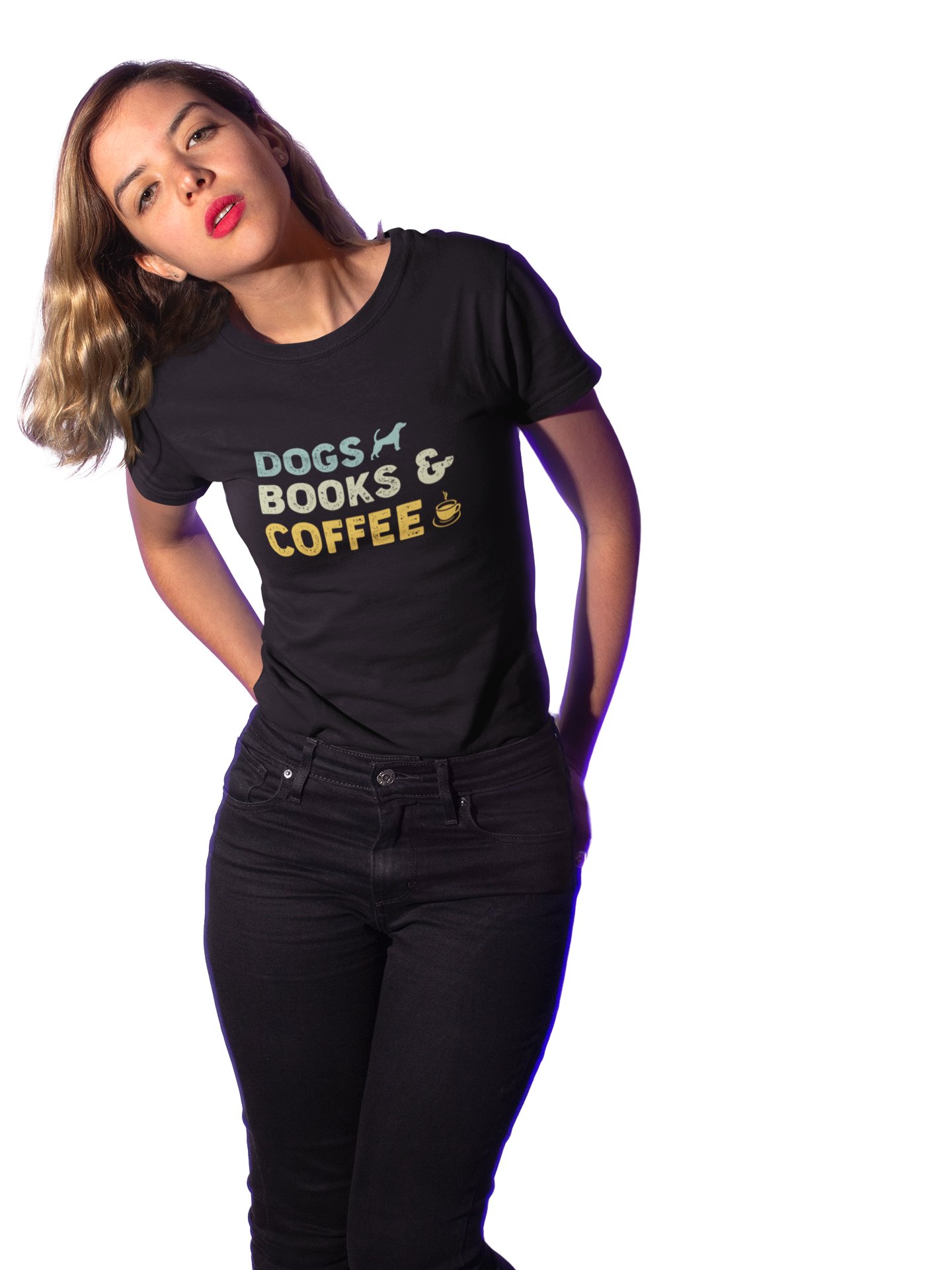 Dogs books coffee -Black -printed cotton t-shirt - comfortable, stylish