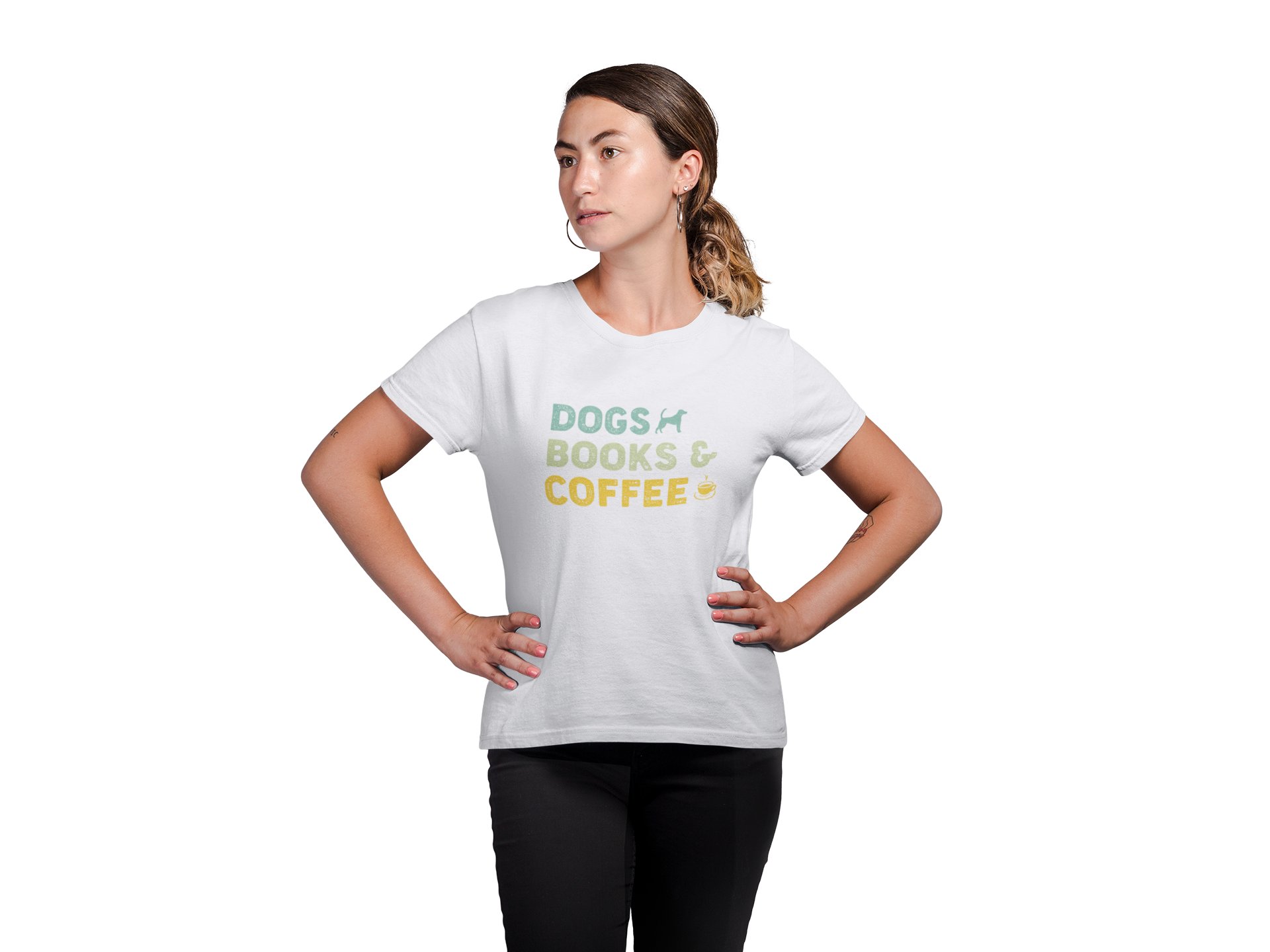 Dogs books coffee (blue light green &yellow text) - White -printed cotton t-shirt - Comfortable and Stylish Tshirt